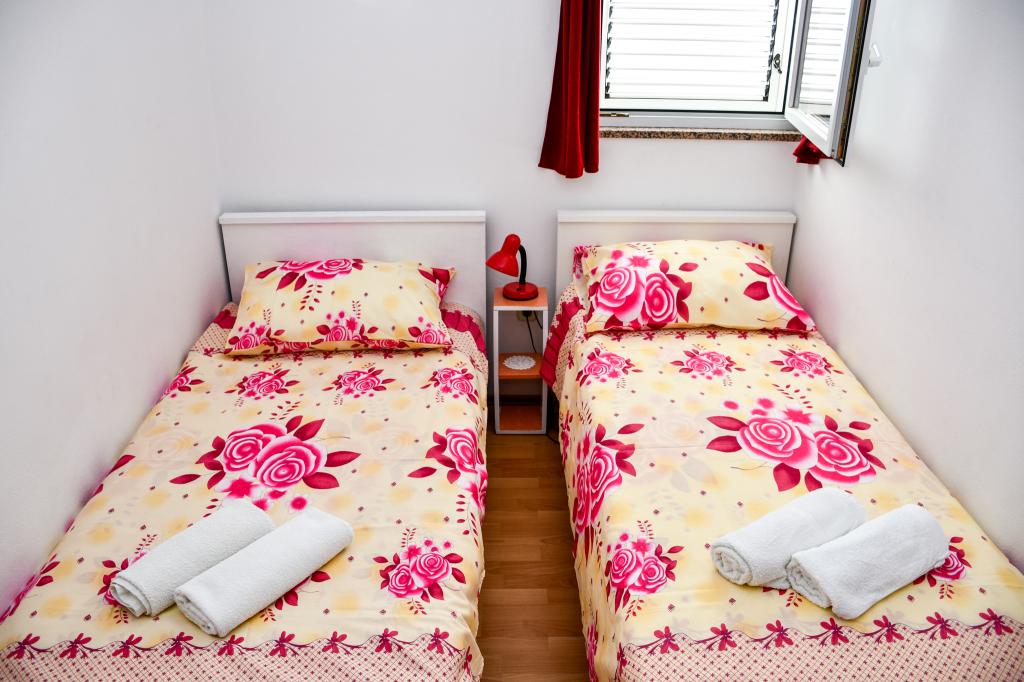 Az apartmanok Ražanac csendes részén találhatók, zaj és hangos közlekedés nélkül, ideálisak a pihenésre és az ünnepi szezonra. A családi ház felső szintjén találhatók. Minden apartman két különálló szobából, egy konyhából és egy fürdőszobából áll. Az apartmanok minden szükséges felszereléssel felszereltek, beleértve a légkondicionálót, az internetet és a műholdas vevőt. Minden apartman erkélye a tengerre és a Velebit hegyre néz. Az ingatlan magában foglal egy nagy udvarat, ahol lehetőség van egy pótkocsi hajójának parkolására. A szálláshely 5 perces sétára található a strandtól és a központtól üzletek, éttermek, posta, mentő, gyógyszertár, piacok, könyvtárak és minden egyéb szükséges felszereléssel.