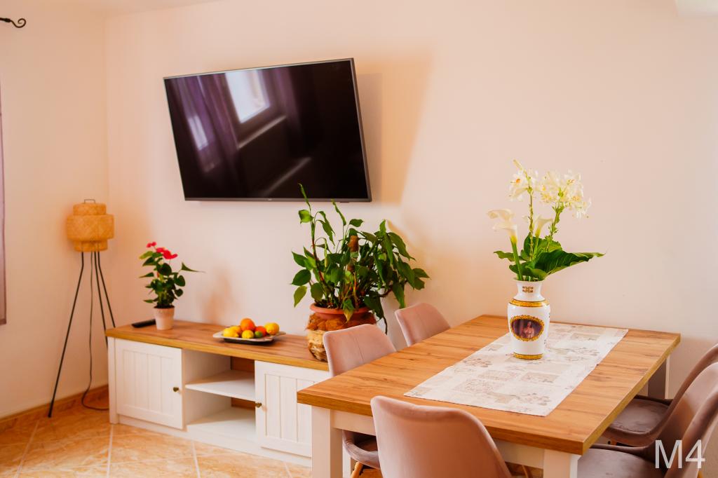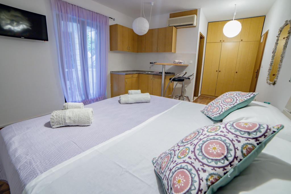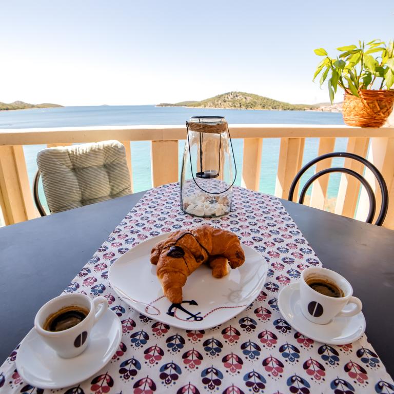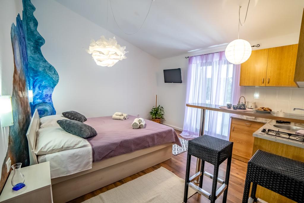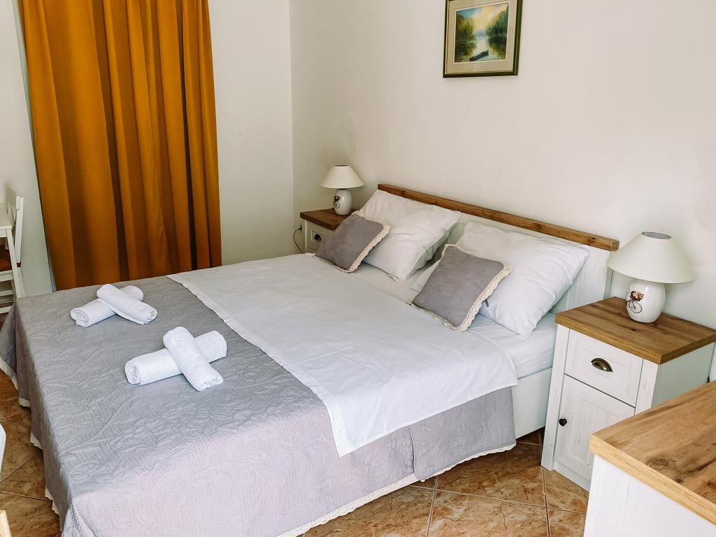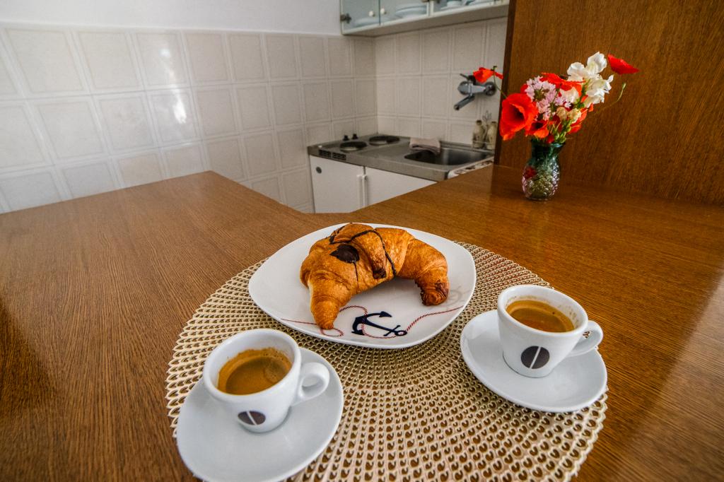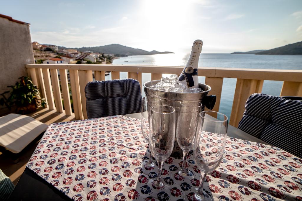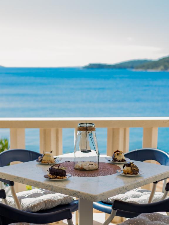 Apartmanjaink részeként egy éttermet is kínálunk, ahol hagyományos dalmát ételeket készítenek otthonosan. Emellett a szállás részeként van piacunk minden szükségleti cikkel, napi friss kenyérrel és egyéb élelmiszerekkel. Segítségnyújtás különböző kirándulások, búvárkodás, horgászat, csónakbérlés és sok egyéb ajánlat megszervezésében helyi munkatársainktól.