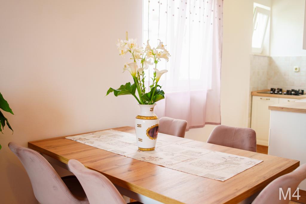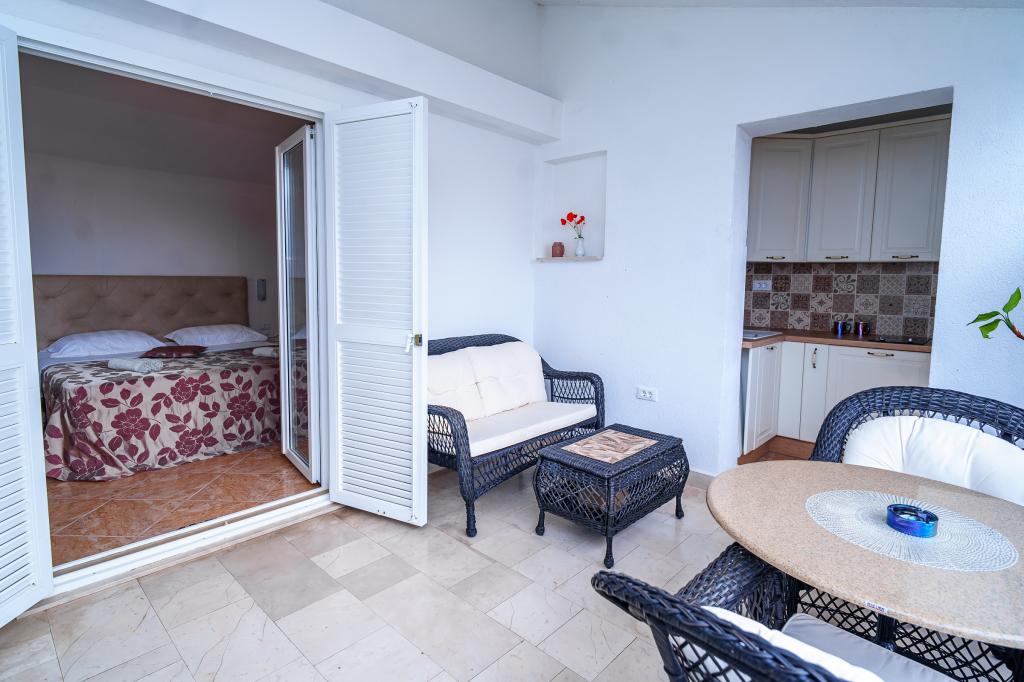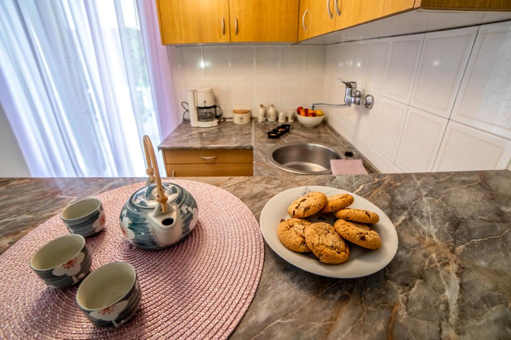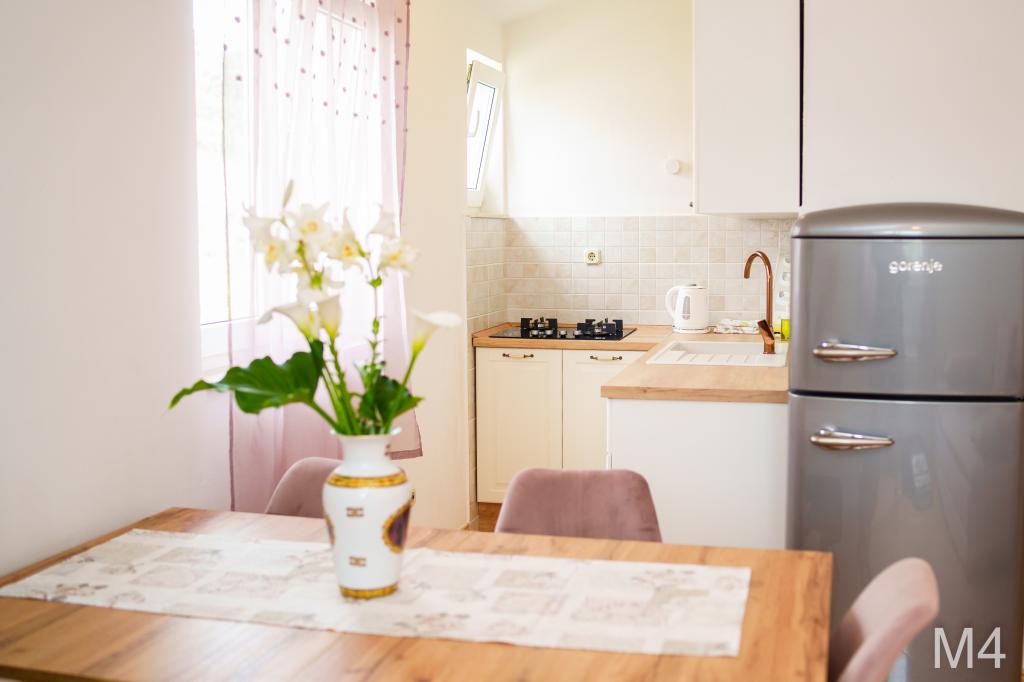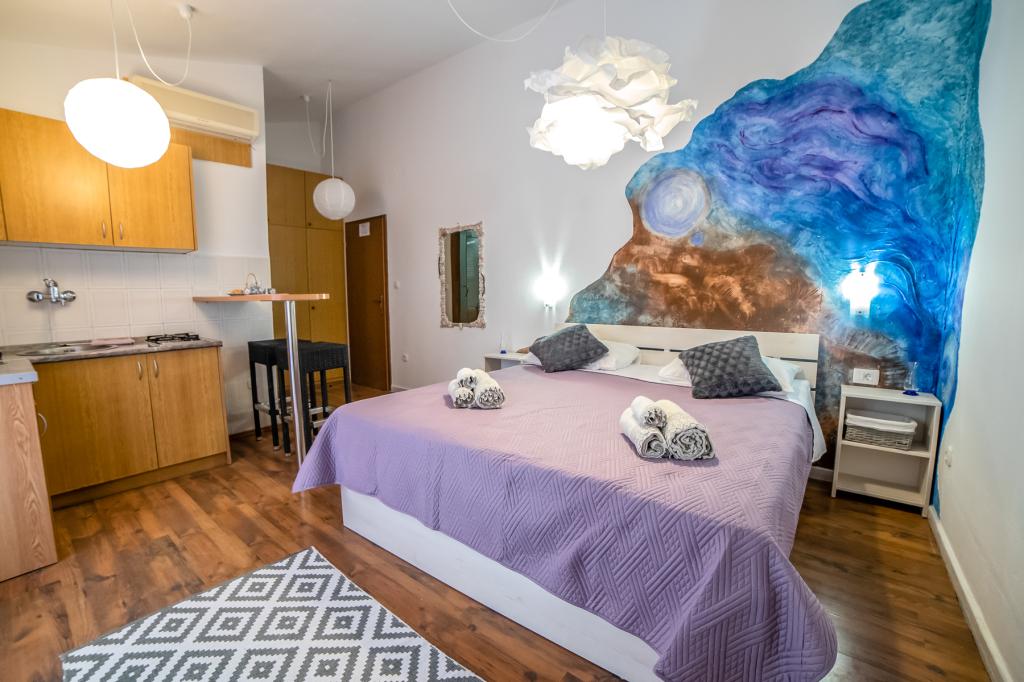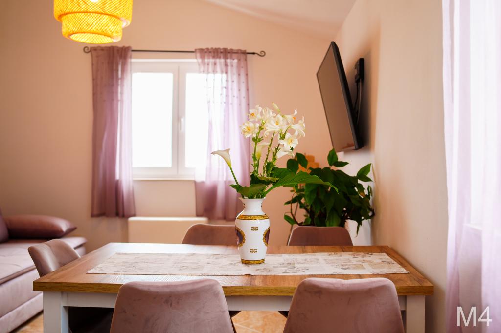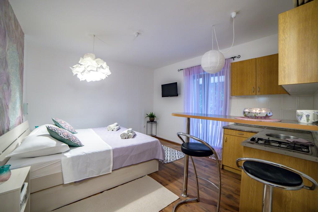 Apartmanjaink részeként egy éttermet is kínálunk, ahol hagyományos dalmát ételeket készítenek otthonosan. Emellett a szállás részeként van piacunk minden szükségleti cikkel, napi friss kenyérrel és egyéb élelmiszerekkel. Segítségnyújtás különböző kirándulások, búvárkodás, horgászat, csónakbérlés és sok egyéb ajánlat megszervezésében helyi munkatársainktól.