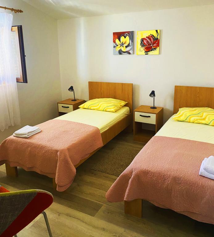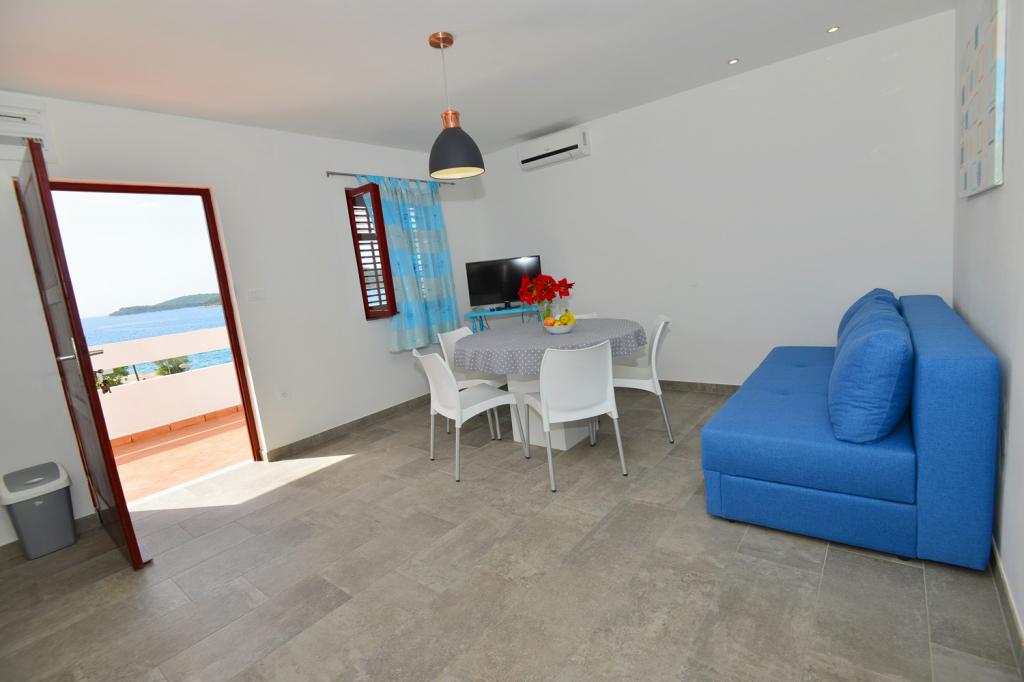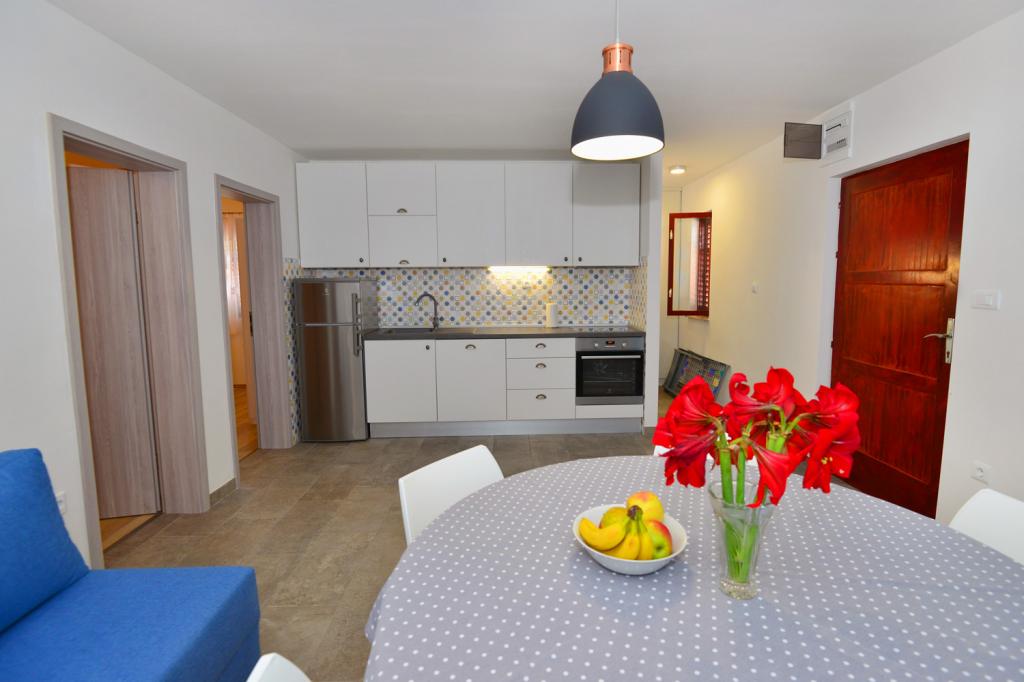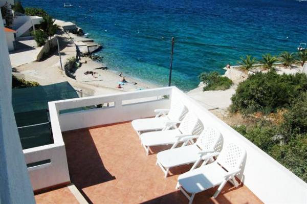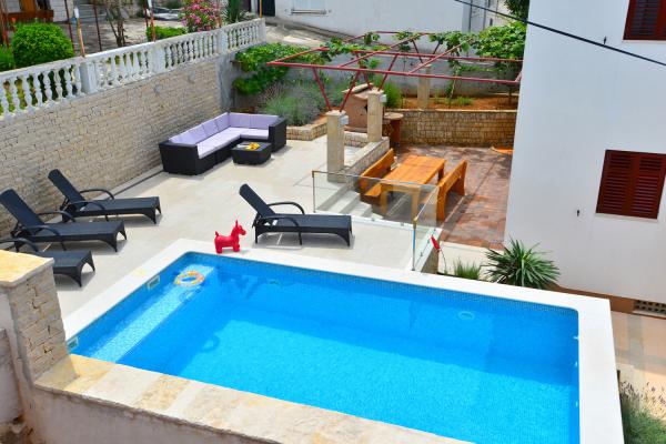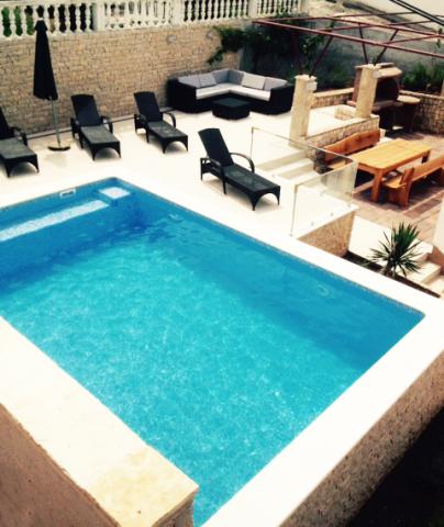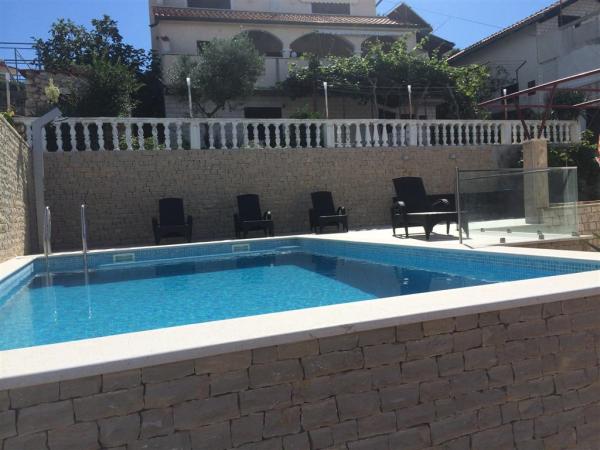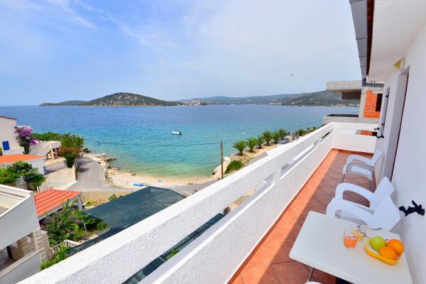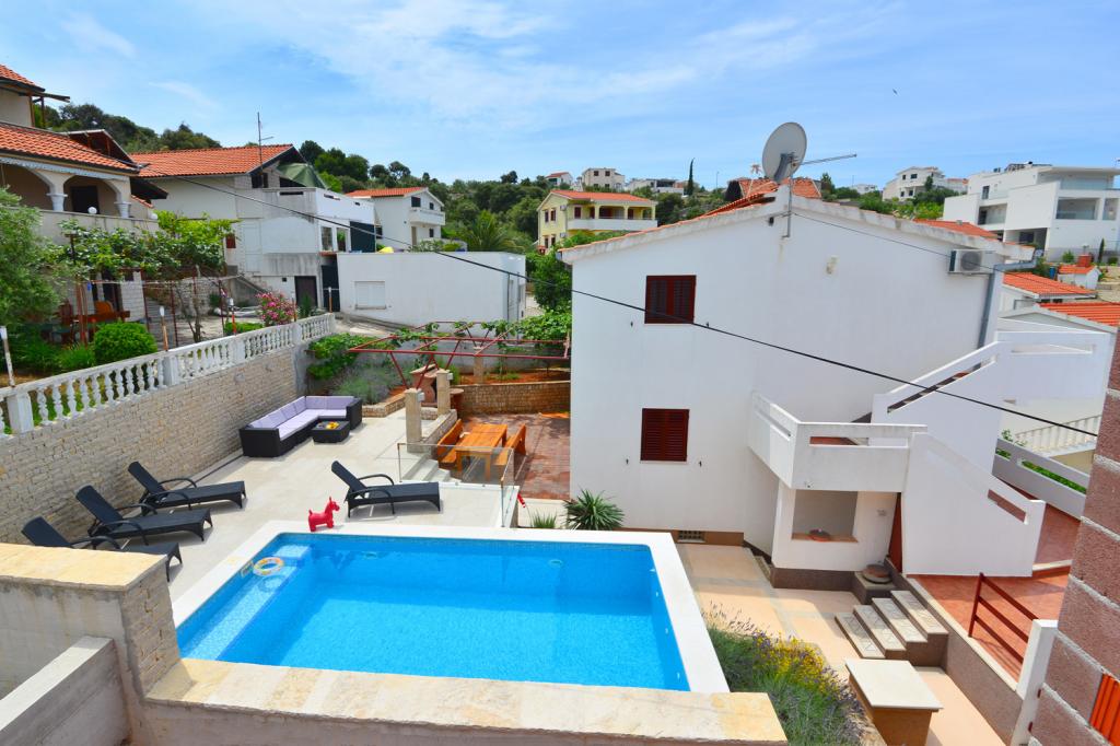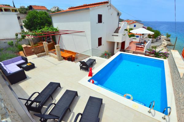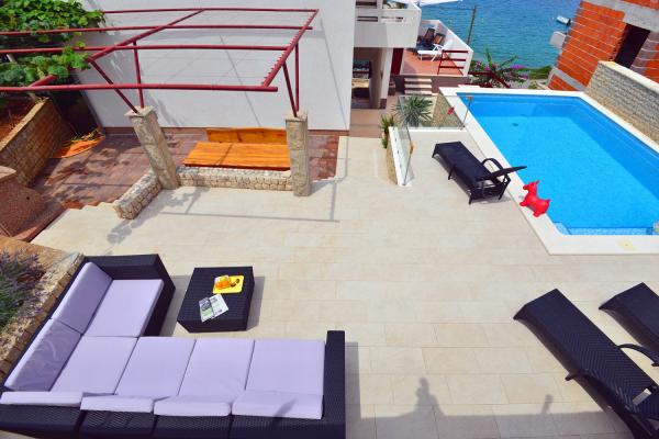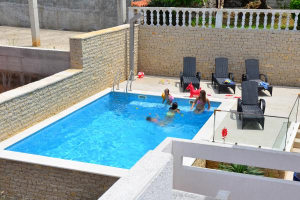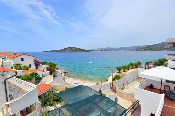 Az apartmanok rendkívül kényelmes és található egy házban a tenger mellett. Csak kis strandja felett. A strand homokos, ideális a gyermekes családok. A vendégek, akik egy intim tartózkodás a tenger választhatják stijenovite részei a part amelyeket el lehet érni egy rövid sétára. A lakások két tágas hálószoba, fürdőszoba, konyha és nagy nappali. Minden apartmanhoz tartozik egy terasz asztallal és székekkel. Vendégeink reggeli kávé a teraszon, amely fantasztikus kilátás nyílik a tengerre és a tenger. A ház mellett egy uszoda megosztott a vendégek elhelyezésére a két apartman. A medence mellett található egy tágas kert felszerelt társalgó székek és étkező asztal. A vendégek használhatják az új grill, hogy van beállítva a használatukra. A lakás ingyenes internet használat. Távolság a kis piac 50 méterre. Az azonos távolságra van egy étterem / pizzéria. Távolság a városba Ražanj 500 m. Az öröm egy séta Ražanj, mert az út a tenger mellett