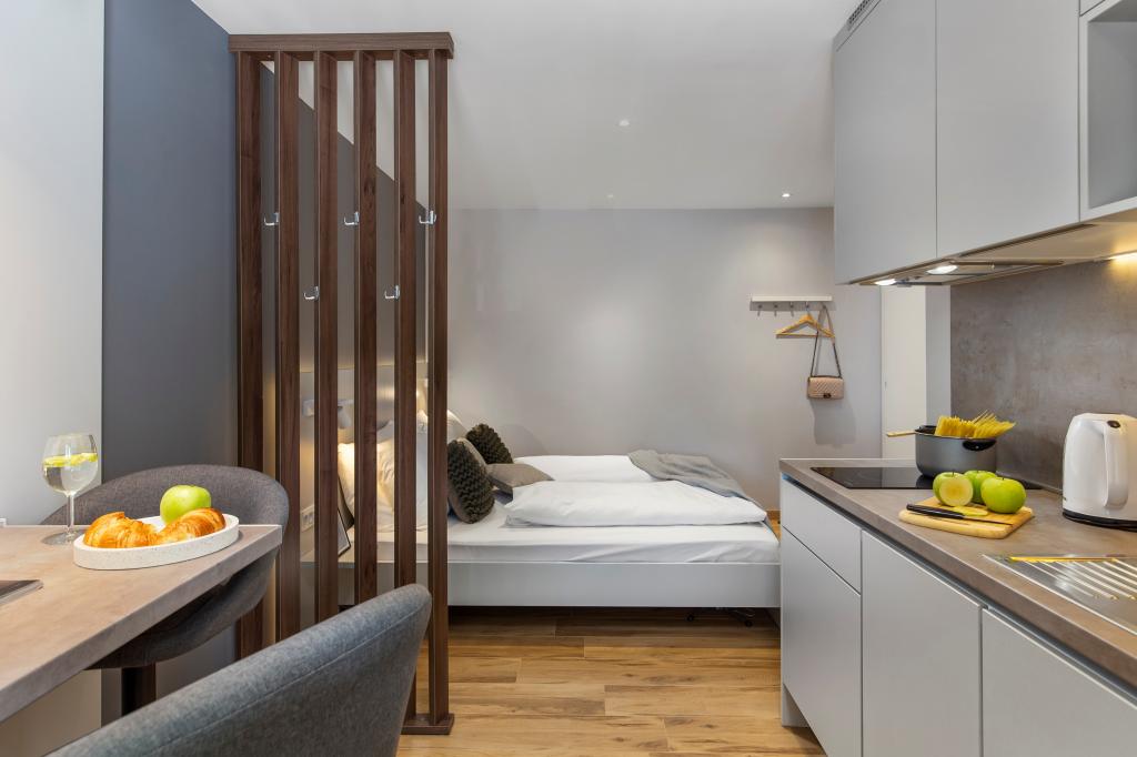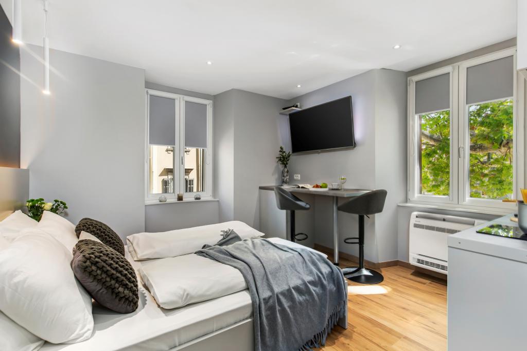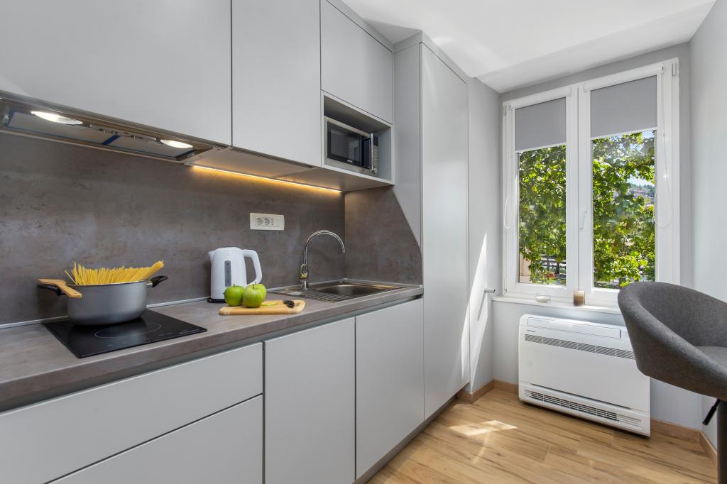 Az InCenter Apartments Rijeka Rijeka központjában található, közvetlenül a Korzo mellett, ideális helyen azoknak a vendégeknek, akik mindenhez közel szeretnének lenni, és gyalogosan szeretnék felfedezni a várost. Stúdióapartmanok Rijeka központjában – önálló bejelentkezés, közvetlenül a Korzo mellett Modern berendezésű stúdióapartmanunk tökéletes párok, egyéni utazók és üzleti vendégek számára, akik kényelmes, praktikus és egyszerű tartózkodást keresnek a városközpontban. Nagy előnye az önálló bejelentkezés PIN-kóddal, amely gyors, rugalmas és gondtalan érkezést tesz lehetővé. Az apartman mindent kínál, amire egy kellemes tartózkodáshoz szüksége van: egy king size ágy és egy kellemes, nyitott terű elrendezés teljesen felszerelt konyha mosogatógéppel, hűtőszekrénnyel, mikrohullámú sütővel, vízforralóval, kávéfőzővel és edényekkel modern fürdőszoba zuhanyzóval és hajszárítóval légkondicionáló, TV MaxTV-vel IPTV, Netflix és gyors Wi-Fi parkolás közeli éttermek, üzletek, tömegközlekedés és a város főbb látnivalói mindössze néhány lépésre vannak az apartmantól Az apartman a 2. emeleten található, lift nélkül. Ha modern stúdiólakást keres Rijeka központjában, nagyszerű helyen, könnyen megközelíthető helyen, mindennel felszerelve, amire egy rövid vagy üzleti tartózkodáshoz szüksége lehet, az InCenter Apartments nagyszerű választás. Google 360 virtuális túra és további információk: www.incenter.com.hr