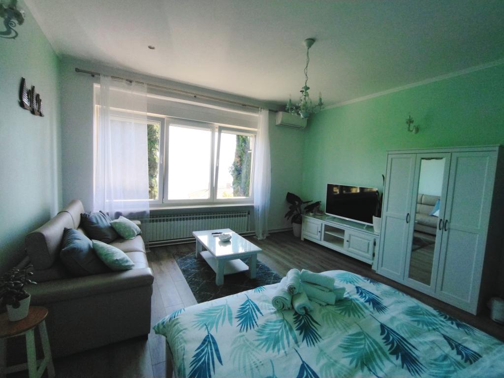 A teljesen felszerelt apartmanok Fiume egy csendes és vonzó részén, Pećine településen találhatók, egy családi villában a tenger melletti második sorban, kerttel körülvéve saját parkolóval. A gyönyörű strandok mindössze 3 perces sétával elérhetők, Rijeka központja pedig mindössze 5 perces autóútra található. A közelben található egy bevásárlóközpont számos szolgáltatással. Az apartmanokban egy tengerre néző hálószoba, konyha, fürdőszoba található, a földszinti apartmanhoz pedig egy további tengerre néző, fedett terasz és grillező tartozik. A helyszínen ingyenes privát parkolási lehetőség biztosított. Tartalma: franciaágy 180x200, kanapé 160x200, Wi-Fi, LED TV / SAT / DVD, rádió, kávéfőző, mosógép, mosogatógép, mikrohullámú sütő, légkondicionáló, zuhanyzó, hajszárító és így tovább.