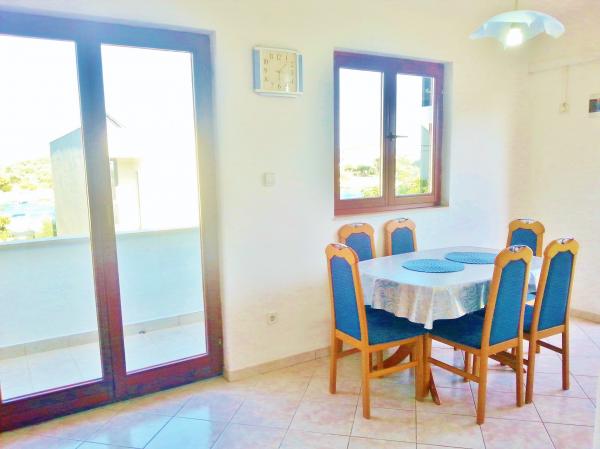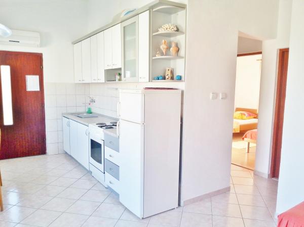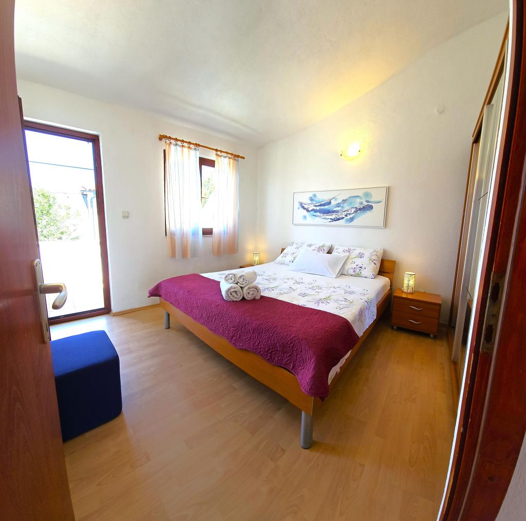 Az Anita apartman csendes környezetben található. Az első emeleten gyönyörű kilátás nyílik a tengerre, a lakás mindhárom oldaláról, és nem a főúton. Az apartman területe 65 m2, két erkéllyel és terasszal rendelkezik. Az apartman két szobával rendelkezik (egy kétágyas szoba, a másikban két egyszemélyes ágy), fürdőszoba, konyha és egy kényelmes nappali légkondicionálóval és intelligens műholdas TV-vel. A bejáratnál található apartman nagy terasszal rendelkezik napernyővel, ülősarokkal és grillsütővel. A lakásban ingyenes internet áll rendelkezésre. Az egyik parkolóhely van a ház előtt. A tengertől és a strandtól 20 m-re, a legközelebbi bolt pedig 100 m-re van. Különféle strandok vannak, kavicsból sziklás és betonozott területekre. A legszebbek a kavicsok, ahol megtalálhatóak a természetes árnyalatú fák, vagy ha szeretné, használhatják a napernyőket a strandon.