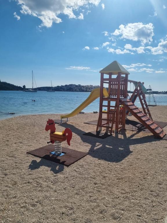 Ízletesen berendezett apartman egy csendes öbölben, 50 méterre vagy 3 perc sétára a strandtól. Beton sétány a tengerparton a városközpontig.