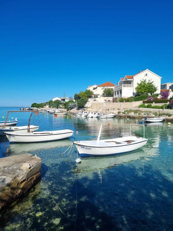 Az apartmanok egy családi házban találhatók, közvetlenül a tengerparton, és mindegyikhez tengerre néző terasz tartozik. Minden apartmanban légkondicionáló, internet, TV, konyha és fürdőszoba található. A ház előtt van egy grillező és egy hely a társasági életre, kilátással a tengerre. Az alagsorban van egy mosógép és egy szárítógép, melyet a vendégek csekély összegért használhatnak. Házvezetőnőnk mindig az Ön rendelkezésére áll.