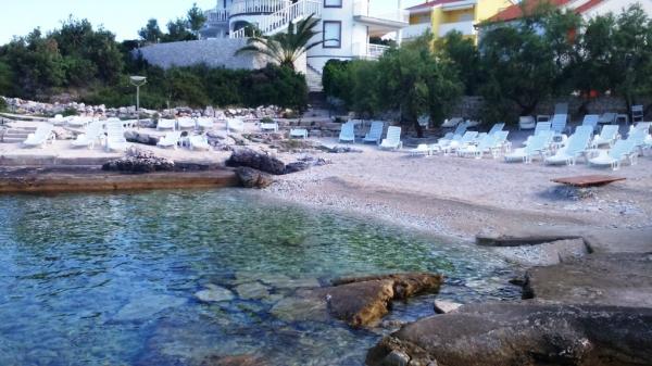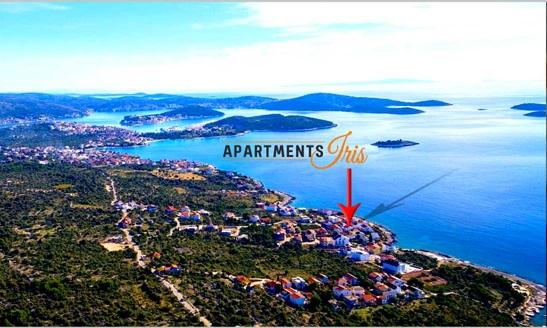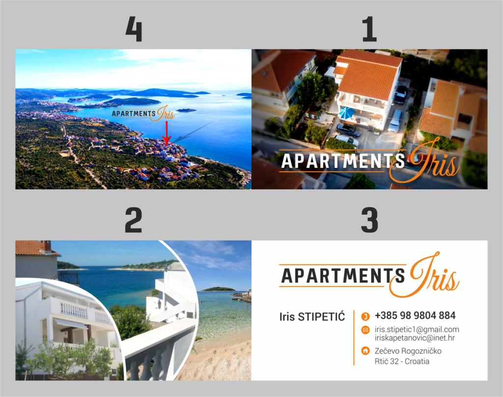 Iris Apartments található egy kis turisztikai Zecevo, a második sorban a tengertől, 40 méterre a szépen elrendezett homokos tengerpart. A strand közelében található LIFE gazdag tartalmak hez vendéglátóhelyek (éttermek, napozóágyak, hűtött italok, kávé, fagylalt). A strandon ülnek 4 napozóágyak tulajdonosa a gazda, világosan jelzett és a vendégek szabadon használhatják őket. A part mentén található legalább JAZ ahol felfrissülhet egy fürdőruhát. A falu szállított minden reggel friss kenyér és zsemle elszállított gépjárművek 7-9 óra reggel. A nagyobb város Rogoznica amely mindössze 30 perc sétára található a sétány, amely alkalmas a sporttevékenységek (kerékpározás, futás), vagy 10 perc autóval. Az élelmiszer-ellátás áll rendelkezésre a szupermarketekben (a bejáratnál Rogoznica) és több kisebb üzlet található a központban Rogoznica.