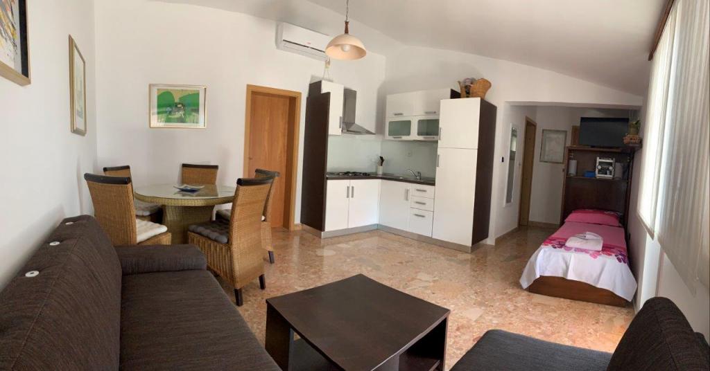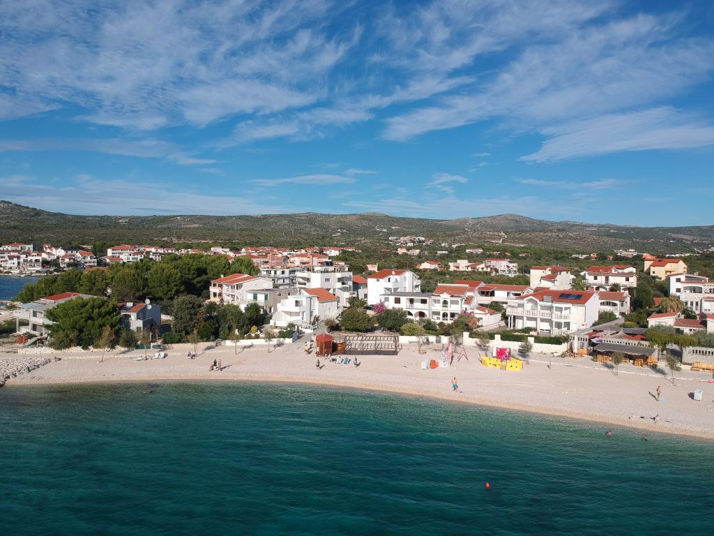 Teljesen bútorozott lakás egy csendes részén Rogoznica, 30 méterre a strandtól, tengerre néző kilátással. Távolsága a település központjától 1000 m.