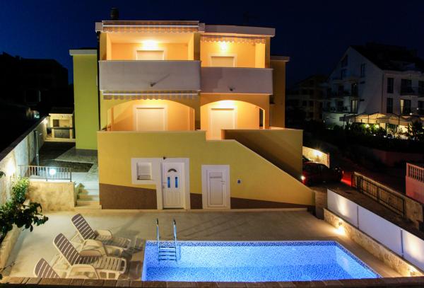 A modern apartmanok egy magas színvonalú, jól felszerelt. A szállodában egy medence. Nagyon közel a tengerhez. Külön strand nyugágyakkal és parasolami.Na strand bárban finom kávé és hideg italok. Nagyon barátságos és vendégszerető házigazdák. Közel a Krka Nemzeti Park, Rogoznica - A Marina Frapa, Primosten. A tökéletes hely egy gondtalan nyaraláshoz.