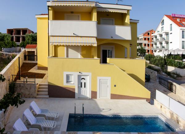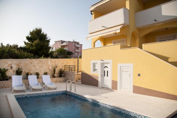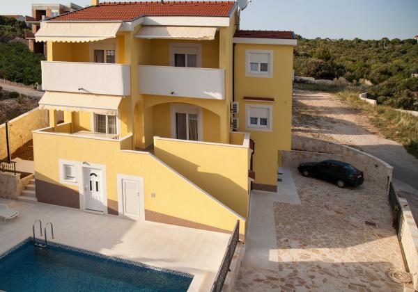 Ház úszómedencével és 3 modern apartmanok Zecevo közelében Rogoznica, 30 méterre a strandtól. Az ingatlan található, 3 km-re Rogoznica, és 6 km-re Primosten.