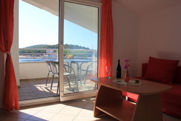 Az apartmanok egy kiváló helyen, a tenger közelében, a város központjában, éttermek és trgovina.Okoliš lakás szépen berendezett, parkoló, és roštiljem.Apartmani gyönyörűen díszített, minden lakás rendelkezik közvetlen kilátás nyílik a tengerre az erkélyről.