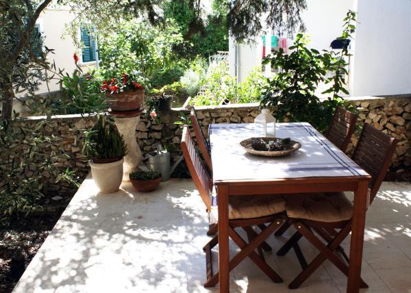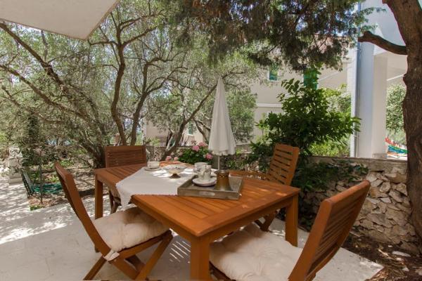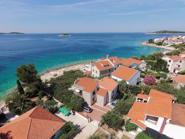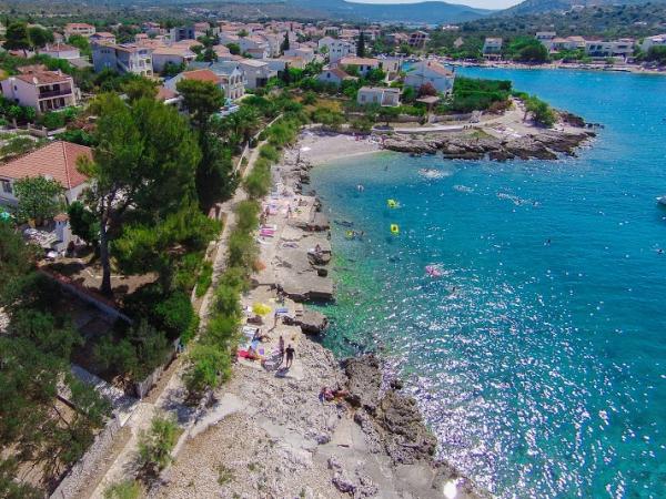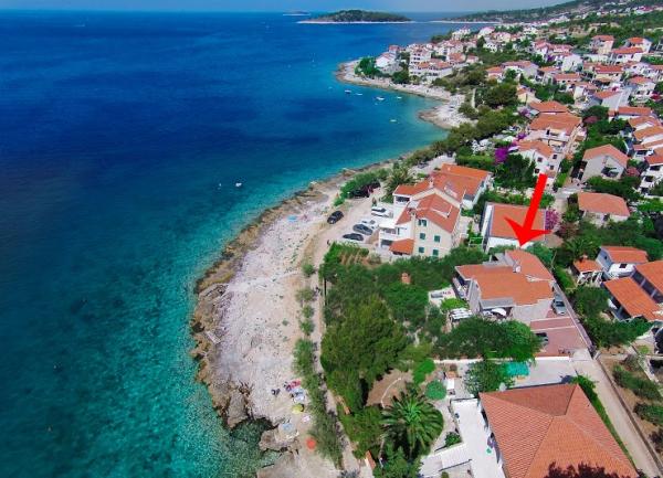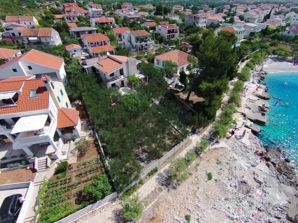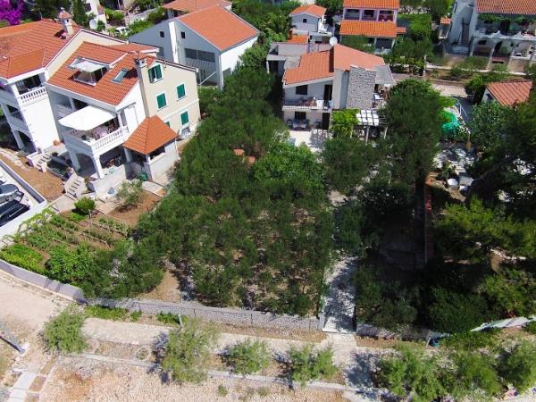 Az apartmanok találhatók egy házban a tenger telken 800m2. A ház egy tipikus dalmát kert (füge, olajbogyó, levendula, virág). Hay olajbogyó ad egy kellemes árnyékot a meleg nyári napokon. A kertben van egy barbecue, egy zuhanyozó, egy köves út jön ki a strandon, ahol a hajó kikötési (ingyenes). A ház mögött van egy nagy parkoló, a belváros könnyen sétára a tengertől 20 percig. A ház közelében van egy szép bár, ahol az árnyékban csermelyciprus élvezheti a reggeli kávé vagy a naplementében egy pohár sör .... Három apartman és lakástulajdonosok segítségével bármikor diszkréten áll rendelkezésre. Beszélünk angolul, franciául és taljanski. Az apartmanok felszerelt, minőségi bútorokkal, részben kézzel készített (fal szekrények), ágynemű, törölköző, konyhai törölköző, edények, eszközök, kisgépek szerves részét képezik. Az erkélyen vannak asztalok, székek, napernyők, strand székek. Márvány padló és lépcsők és erkélyek fehér dalmát kő.