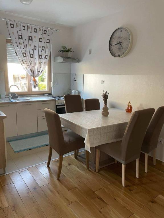 Teljesen modern berendezésű apartmanok konyhával, mosogatógéppel, hűtőszekrénnyel, fagyasztóval, tűzhellyel, sütővel, teljes edényekkel, mosógéppel, minden szoba légkondicionált, ingyenes internettel, ingyenes parkolási lehetőséggel, mindezt egy csendes környéken, mindössze néhány perc sétára a gyönyörű strandtól, a tiszta és kristálytiszta tengertől, ahol úszás, búvárkodás és szörfözés is lehetséges. Közel a bevásárlóközponthoz. Közel a városközponthoz, ahol a központi téren különféle rendezvények, koncertek és helyi fesztiválok zajlanak. Kavicsos strand. Ellátogathatsz a rogoznicai Frapa kikötőbe, a hegy közepén található Sárkányszem-tóhoz és a Levendula labirintusba.