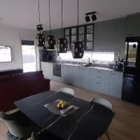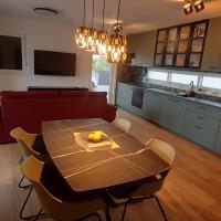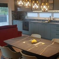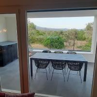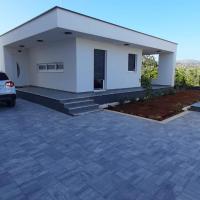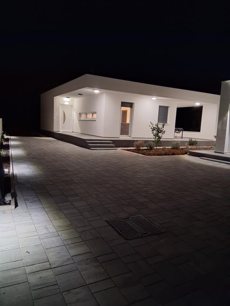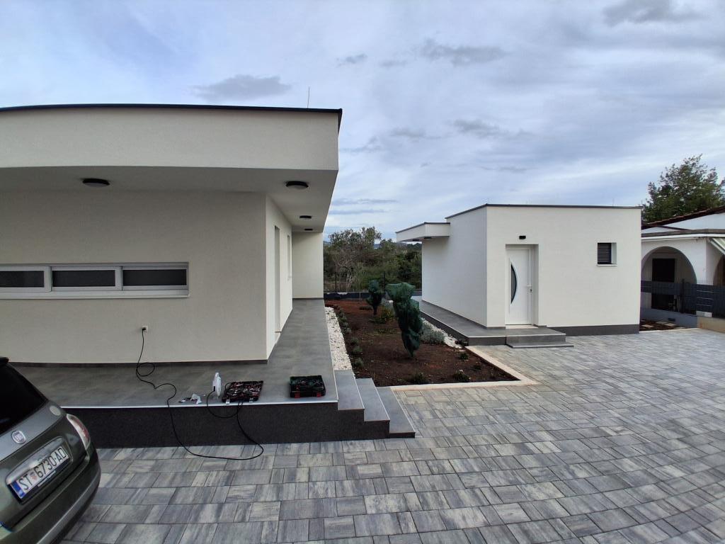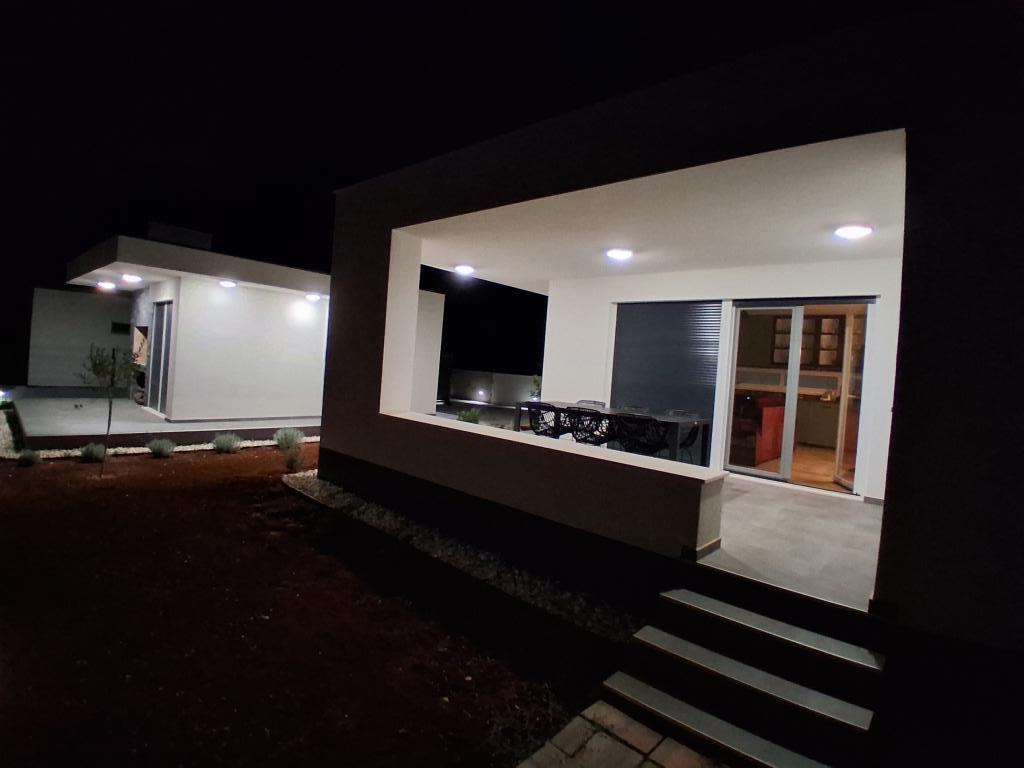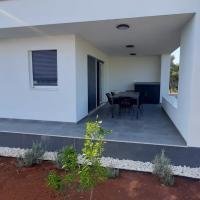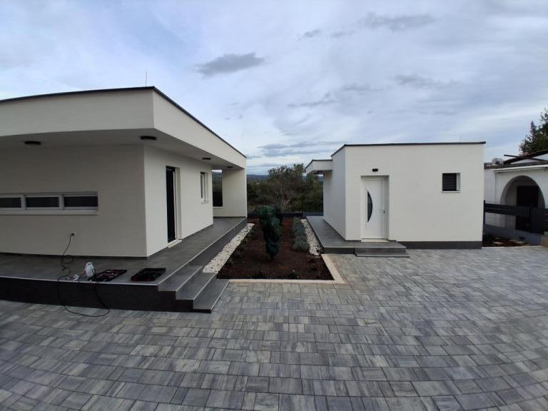 Új, egyszintes ház 70 négyzetméteres lakóterülettel és 30 négyzetméteres fedett terasszal, csendes helyen, az úttól távol, olajfaligetre néző kilátással. A tágas terasz védett a szomszédos házaktól, és garantálja a magánéletet. A strand gyalogosan is elérhető, néhány percre az ingatlantól. Három autó számára biztosított privát parkolás. Két légkondicionált hálószobával (1. nagy franciaágy, 2. két egyszemélyes ágy), tágas, légkondicionált nappalival, konyhával és étkezővel, valamint egy nagy fürdőszobával és WC-vel rendelkezik. A ház teljesen új bútorokkal és készülékekkel, okos TV-vel, terasszal és egy nagy asztallal 6 fő részére felszerelt.