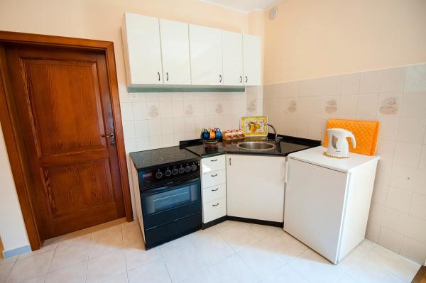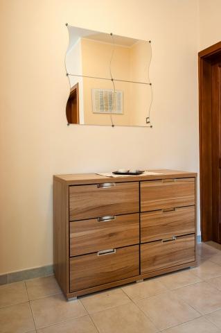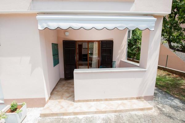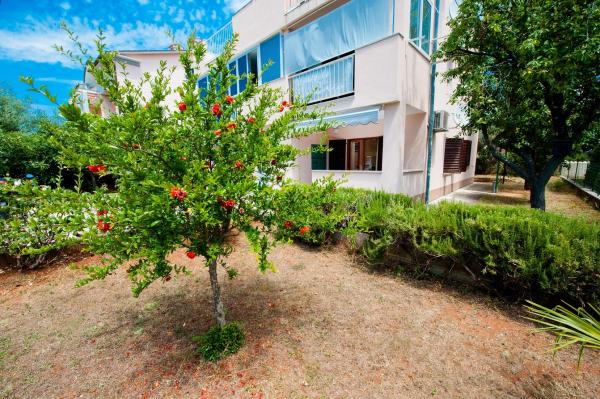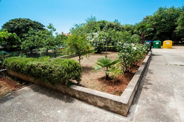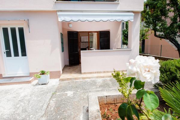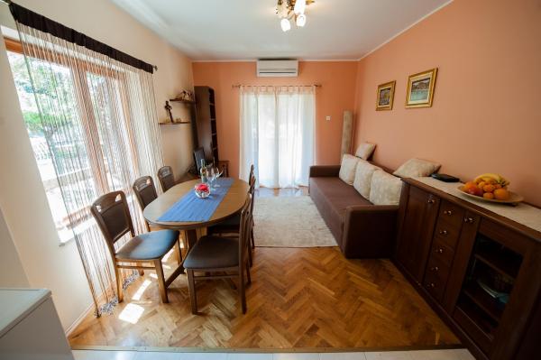 Az apartman egy nagyon csendes környéken található, zöldövezetben, és mindössze tíz perc sétára a tengertől. Egy hálószoba, fürdőszoba, nappali kis konyhával rendelkezik. A földszinten található, terasza egy kis virágoskertre néz. Ideális pároknak vagy egy-két gyermekes családoknak. Az utca túloldalán egy kis park található, ahol a gyerekek játszhatnak.