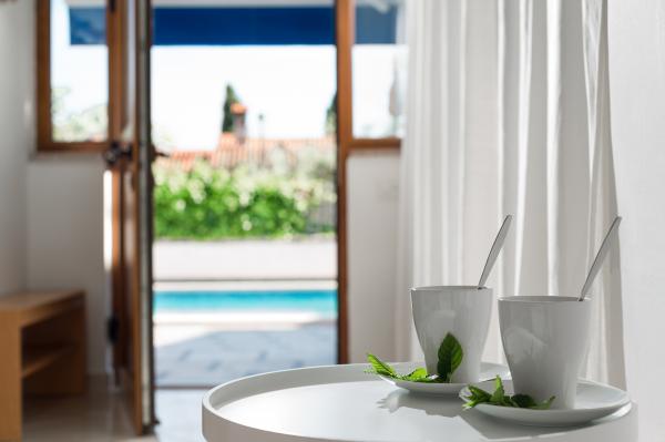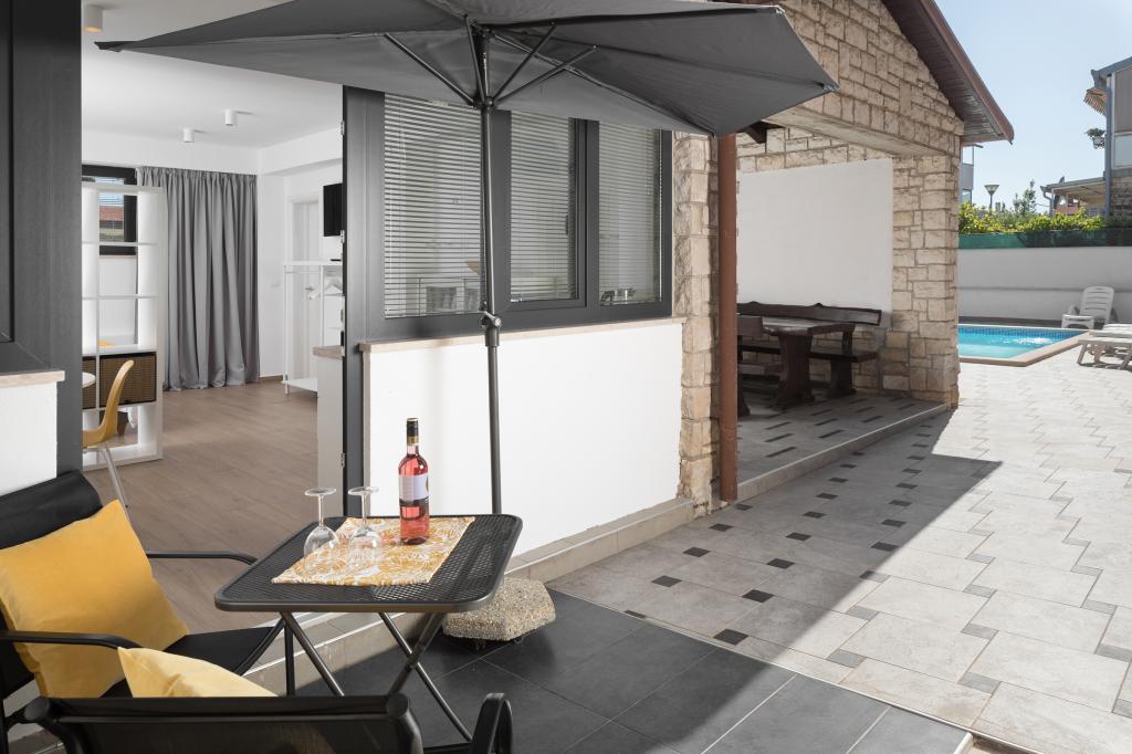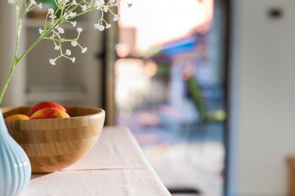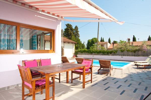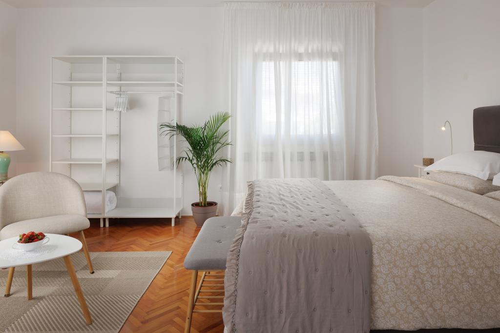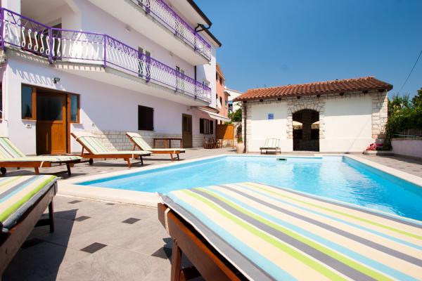 Az ingatlan a város csendes részén található, a közelben éttermek, gyógyszertár és élelmiszerboltok (10-100m) találhatóak. A városközpont 800m-re található, ami kb 10 perces sétával elérhető, a legközelebbi strand pedig kb. A ház hátsó udvarában egy úszómedence és egy napozó rész található, mely zöldövezetben, más házaktól védetten áll a vendégek rendelkezésére a kellemes időtöltéshez, pihenéshez.