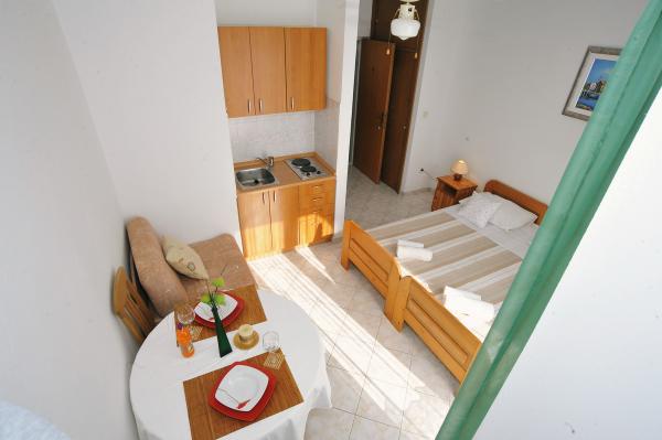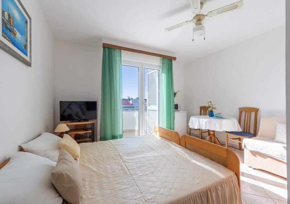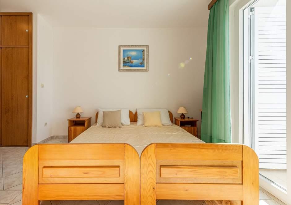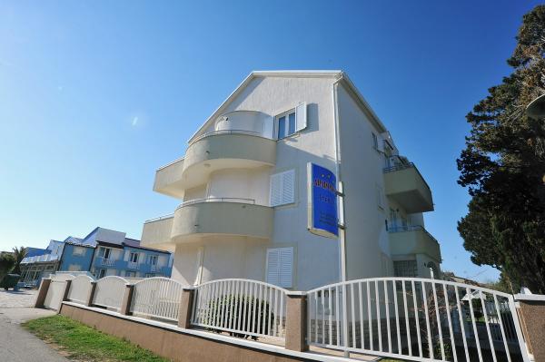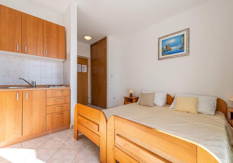 Egy korszerűen felszerelt ház 9 szállásegységből áll: 6 apartman egy hálószobával és egy nappalival, két extra kihúzható ággyal, egy két- és egy háromszemélyes ággyal, valamint felszerelt konyhával, zuhanyzós fürdőszobával, ill. egy nagy erkély asztallal és székekkel. A folyosón egy nagy gardrób található. 3 stúdió két fő részére van kialakítva, teljesen felszereltek: zuhanyzós fürdőszoba, nagy gardrób, konyha, valamint egy kisebb erkély asztallal és székekkel. Minden apartman légkondicionált.A ház 3 perc sétára található a tengertől, vagy 5 perc sétára a nagy homokos strandtól (Kraljičina plaža).