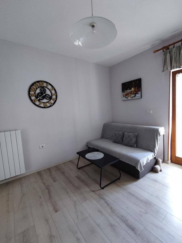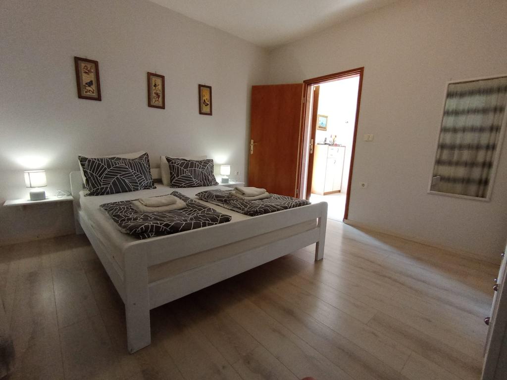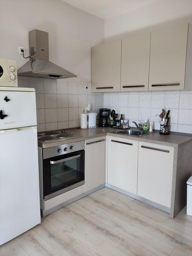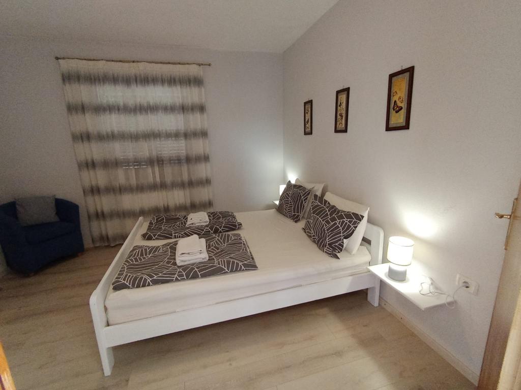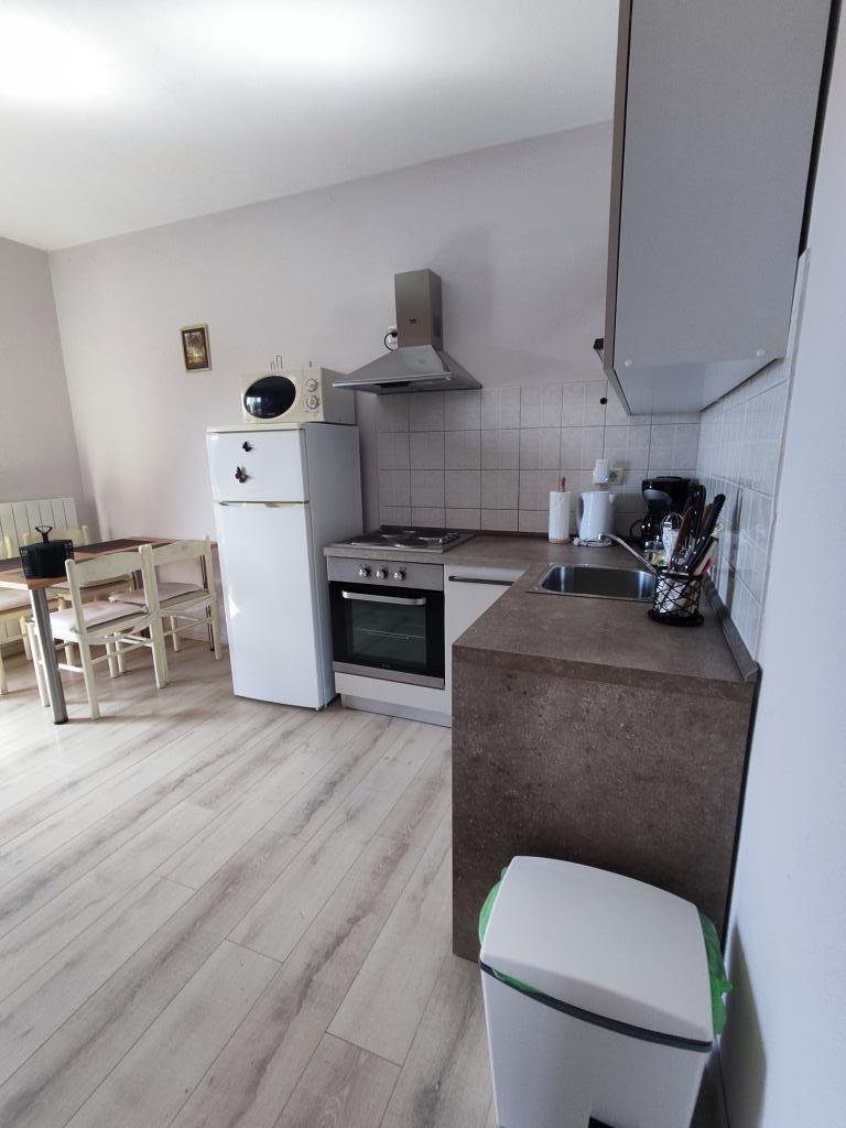 A lakás vidéki környezetben található, gyalogosan is elérhető friss gyümölcs és zöldség, méz, házi tojás... 700 méterre az első strandtól. Egy hálószoba franciaággyal és egy kanapéággyal, matracvédővel +2 fő részére, két terasz kilátással a természetre és az olajfaligetre, a vendégek a szőlővel borított pergola alatti árnyékban is élvezhetik az ellazulást. A lakást mindennel felszereltük, amiről úgy gondoljuk, hogy egy kellemes nyaraláshoz szükséges: törölközők, ágynemű, főzőeszközök, fűszerek, extra szűz olívaolaj, ecet, kávéfőző, mokkafőző, vízforraló, kenyérpirító, mikrohullámú sütő, sütő, mosogatógép, mosógép, hajszárító, vasaló, légkondicionáló, WC-papír, biztonságos parkolóhely... Külön bejárat. Dohányozni a teraszokon lehet. Háziállatokat szívesen látunk. Egy csendes kis család vagyunk, akik nem zavarják Önöket a nyaralás alatt, szezonális gyümölcsökkel és zöldségekkel teli kosárral, valamint friss fűszerekkel teli kerttel várjuk őket, további információkért és kívánságokért állunk rendelkezésére, nyugodtan kérdezzen :)