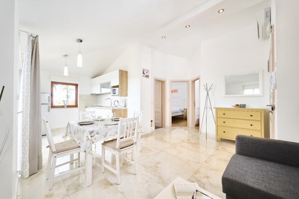 Két hálószobás, modern és felszerelt apartman. Az egyik szobában franciaágy, a másikban emeletes ágy található. Nyitott és szellős nappali, mosogatógéppel felszerelt konyha, mosógéppel felszerelt fürdőszoba. Terasz, légkondicionáló, wifi, műholdas TV. Úszómedence, saját parkoló, fedett grillező. Távolság az étteremtől 300 méter, távolság a strandtól 1300 méter.
