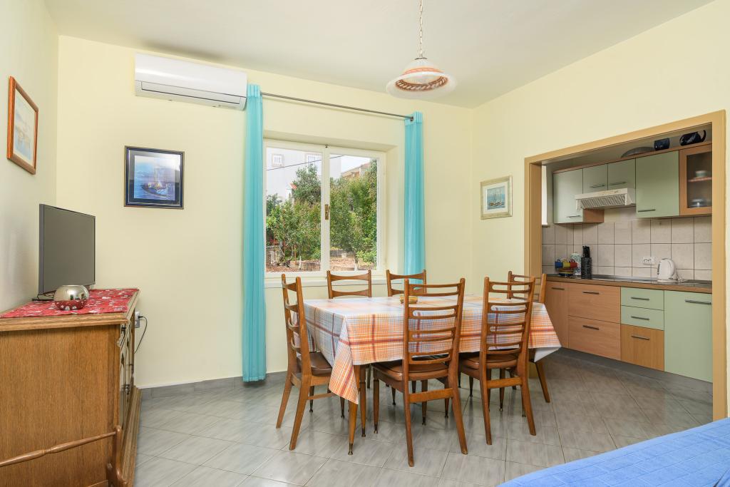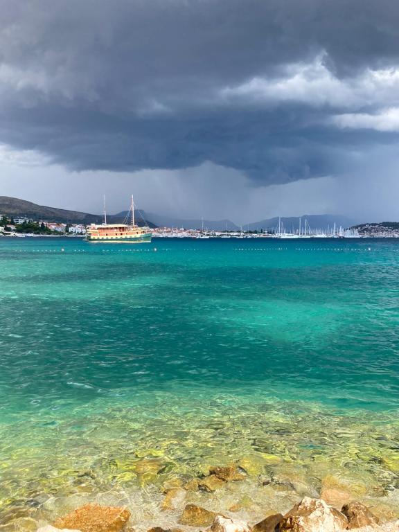 Teljesen felszerelt apartman csendes környéken. Az első sorban található a tengertől, 10 m-re a strandtól. Az apartman 20 perces sétára található a központtól és 40 perces sétára Trogir városától. A közelben étterem és kávézó található.