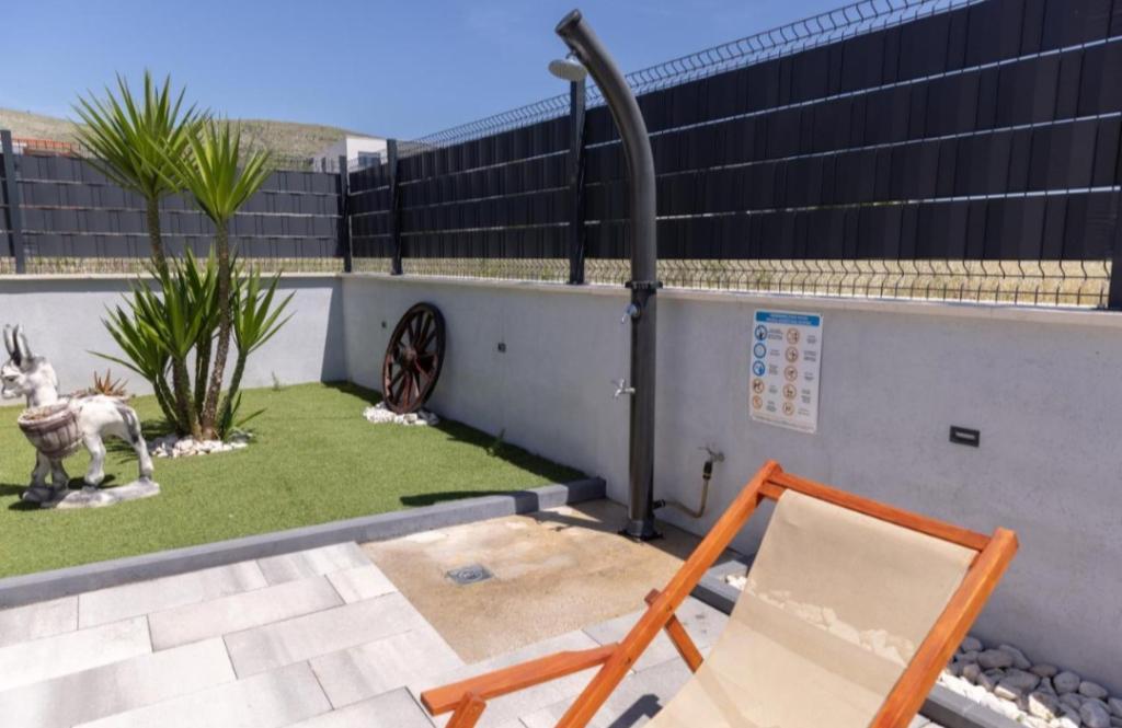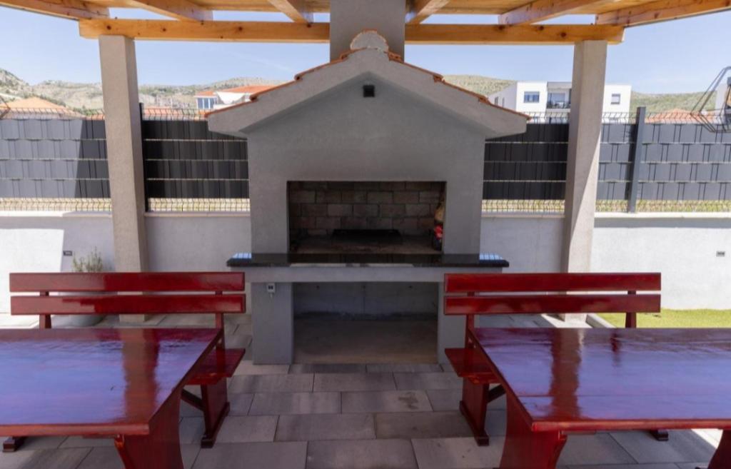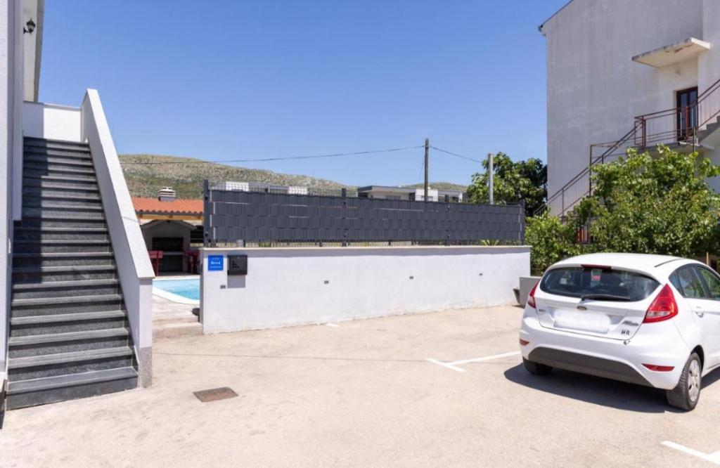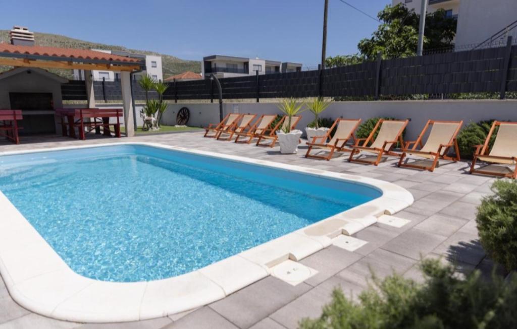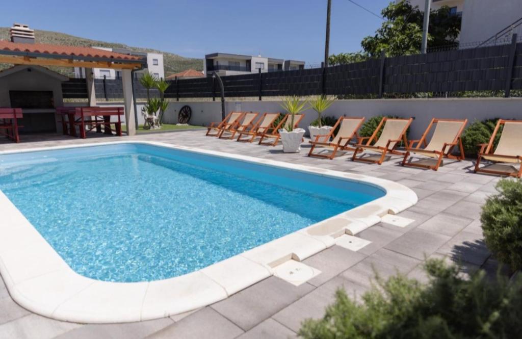 Újonnan berendezett villa Seget Donjiban. 2 db 65 m2-es apartmant tartalmaz. Minden apartmanban van egy fürdőszoba, két hálószoba franciaággyal. Minden apartmanhoz tágas nappali tartozik. A villa 168 négyzetméteres kerttel, 30 négyzetméteres úszómedencével, szabadtéri grillezővel, nyugágyakkal a pihenéshez, a medencéhez tűzipóló kapukkal rendelkezik. Mindkét apartman a medencére és a tengerre néz. A Baotić kikötő 100 méterre található. A Tommy üzlet 50 méterre található, benne egy friss kenyeret, péksüteményeket és friss húst árusító bolt. A Barba étterem, valamint a Caffe Bar és gyógyszertár 50 méterre található. A villa Trogir és Seget Donjeg határán található.