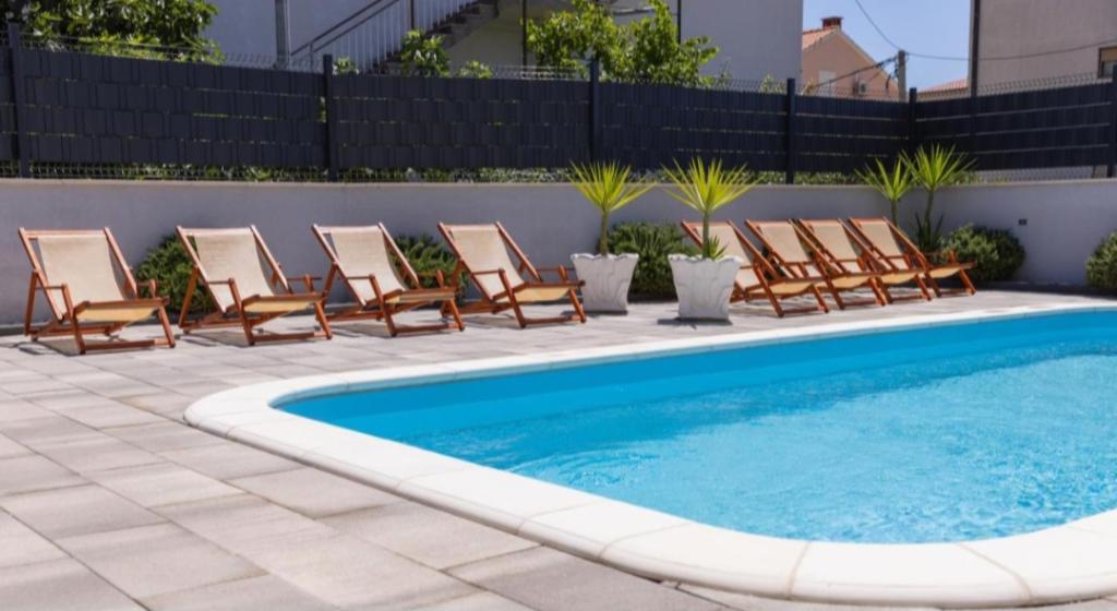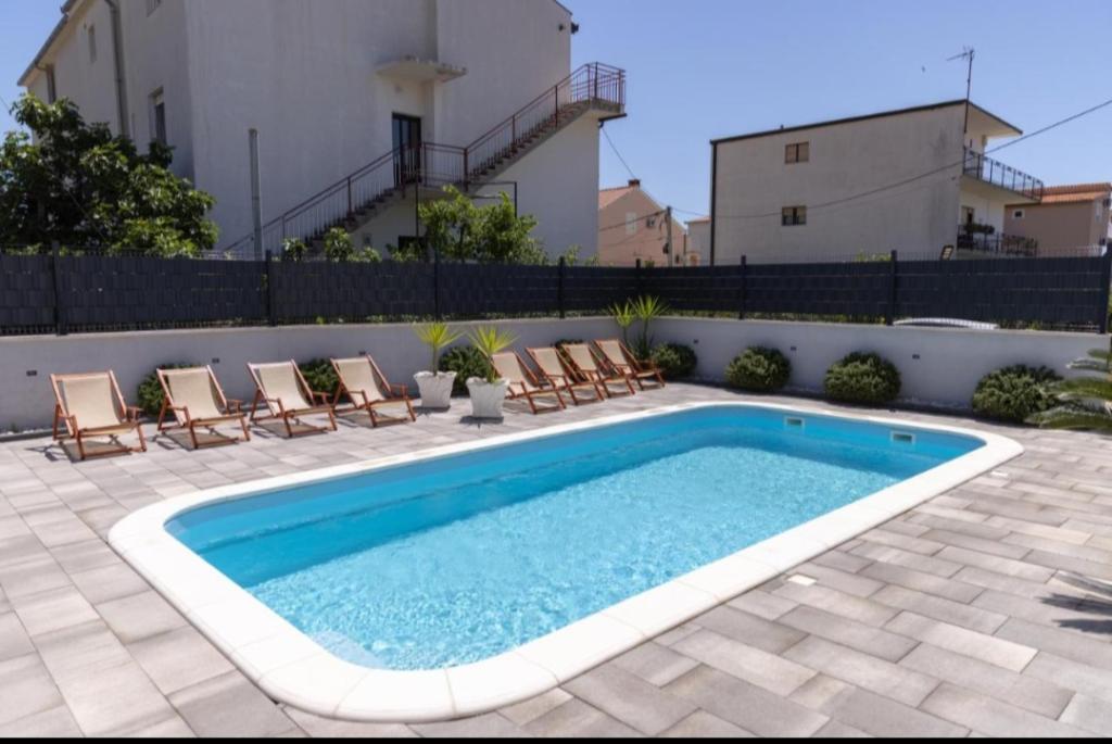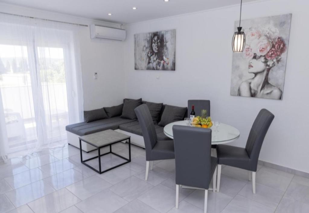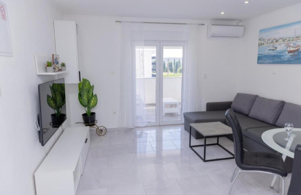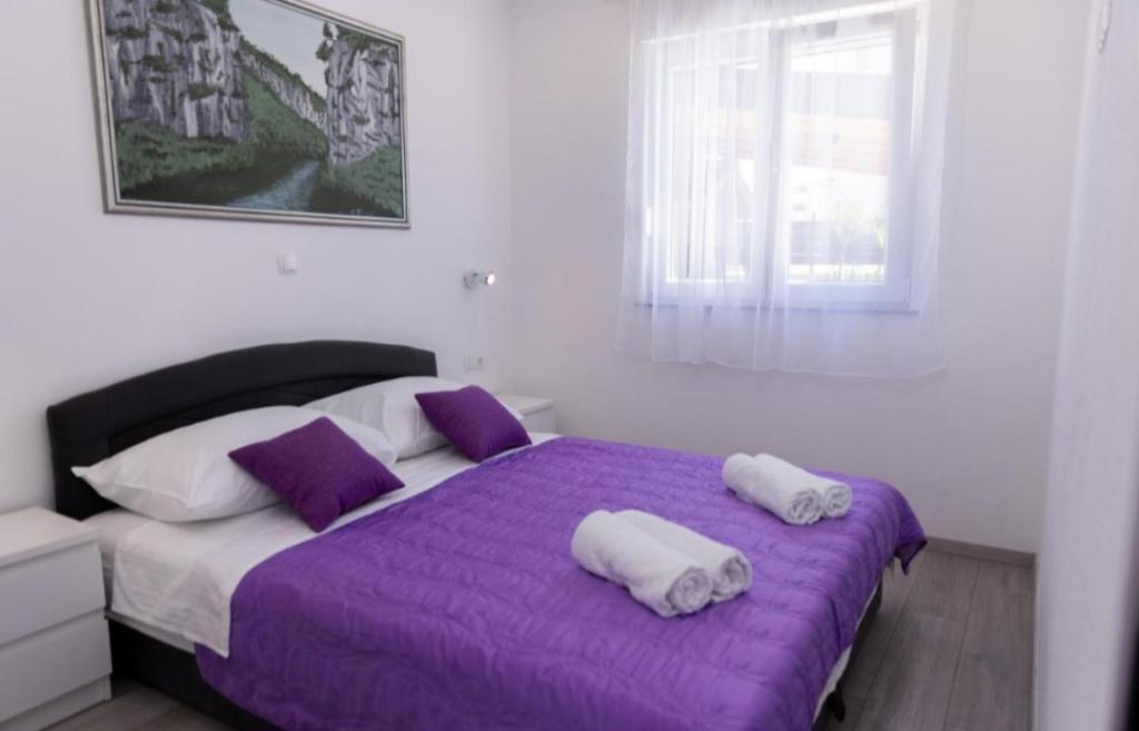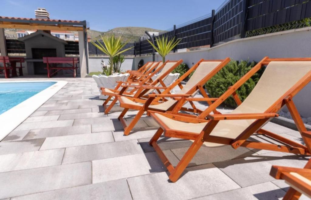 Újonnan berendezett villa Seget Donjiban. 2 db 65 m2-es apartmant tartalmaz. Minden apartmanban van egy fürdőszoba, két hálószoba franciaággyal. Minden apartmanhoz tágas nappali tartozik. A villa 168 négyzetméteres kerttel, 30 négyzetméteres úszómedencével, szabadtéri grillezővel, nyugágyakkal a pihenéshez, a medencéhez tűzipóló kapukkal rendelkezik. Mindkét apartman a medencére és a tengerre néz. A Baotić kikötő 100 méterre található. A Tommy üzlet 50 méterre található, benne egy friss kenyeret, péksüteményeket és friss húst árusító bolt. A Barba étterem, valamint a Caffe Bar és gyógyszertár 50 méterre található. A villa Trogir és Seget Donjeg határán található.
