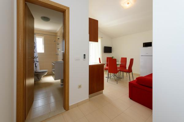 Frissen felújított apartmanok 9x5 méteres medencével, tágas napozórésszel nyugágyakkal és sarokbútorokkal, a medencében WC is található, a gyönyörű dalmát Seget Vranjica városában, mindössze 5 perc sétára a strandtól. 200 m-en belül üzletek, éttermek, templom, sportpályák stb. Az ősi UNESCO város Trogir mindössze 4 km-re található tőlünk, amit a Seget Vranjica - Trogir kompjárat köt össze, a repülőtér 10 km-re található, ill. Split városa 30 km-re található.