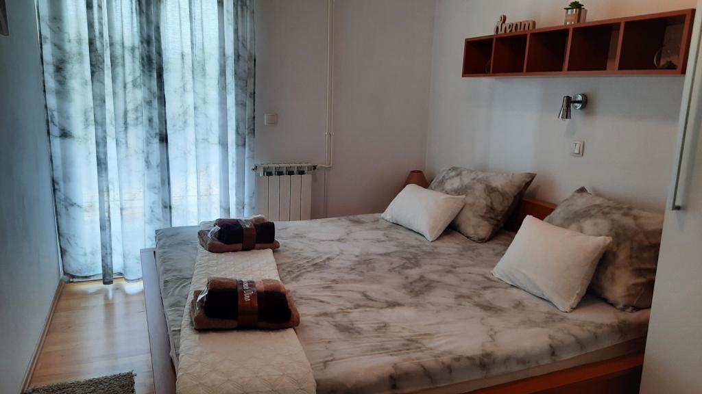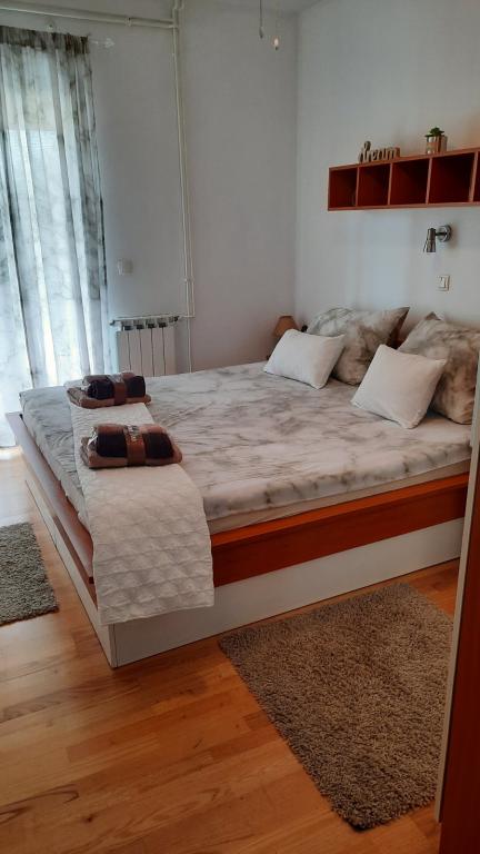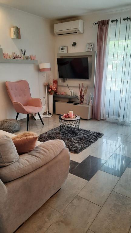 Az Apartment Branka mindössze 10 percre található a központtól és 5 percre a fő strandtól. A város egy csendes részén található, zöld növényzettel és egy nagy kerttel körülvéve, amelyet a gyerekek a legjobban élveznek a gyerekjáték-felszerelések, például a trambulin, a csúszda változatos kínálata miatt. Légkondicionált. 2 szobája, konyhája van összekötve a nappalival, fürdőszoba, nagy udvar és tengerre néző terasz.