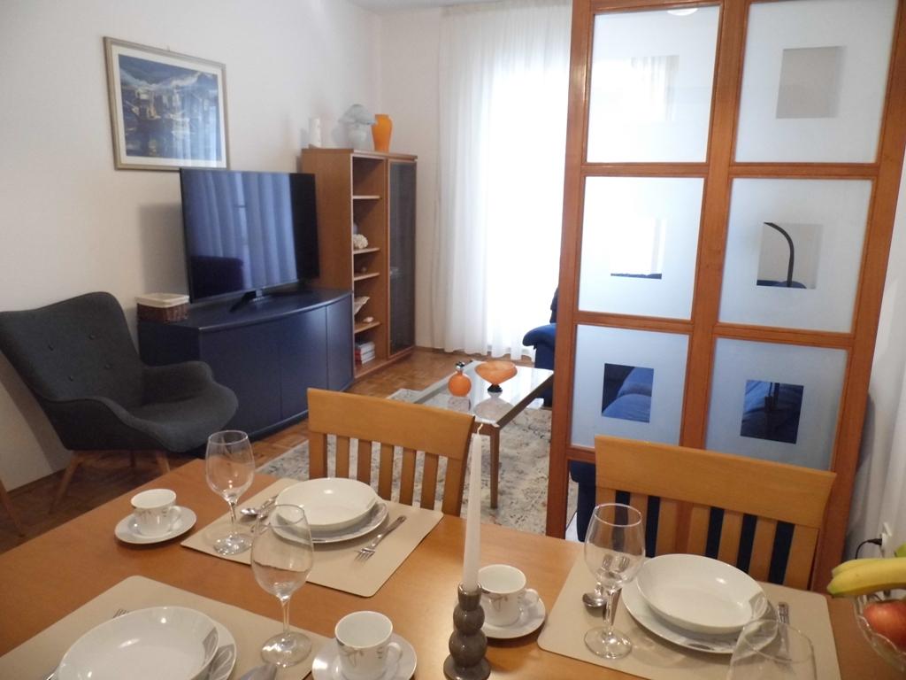 A tengerparti apartman található. Két hálószobával, egy fürdőszobával, egy konyhával és egy nappalival ellátott étkezővel rendelkezik. A teraszról és a hálószobából kilátás nyílik a tengerre. Az apartman légkondicionálóval, síkképernyős TV-vel, Wi-Fi-vel és mosógéppel felszerelt. A konyhában hűtőszekrény, tűzhely és sütő található. Az apartman Selce bejáratánál, a tengerparton található, kevesebb mint 30 méterre egy szép strandtól, amely ideális gyermekes családok számára. A közvetlen közelben található a városi strand, amely a város szívéig húzódik. A közeli Crikvenica mindössze 15 perces kellemes sétával elérhető a Lungo Mare mentén.