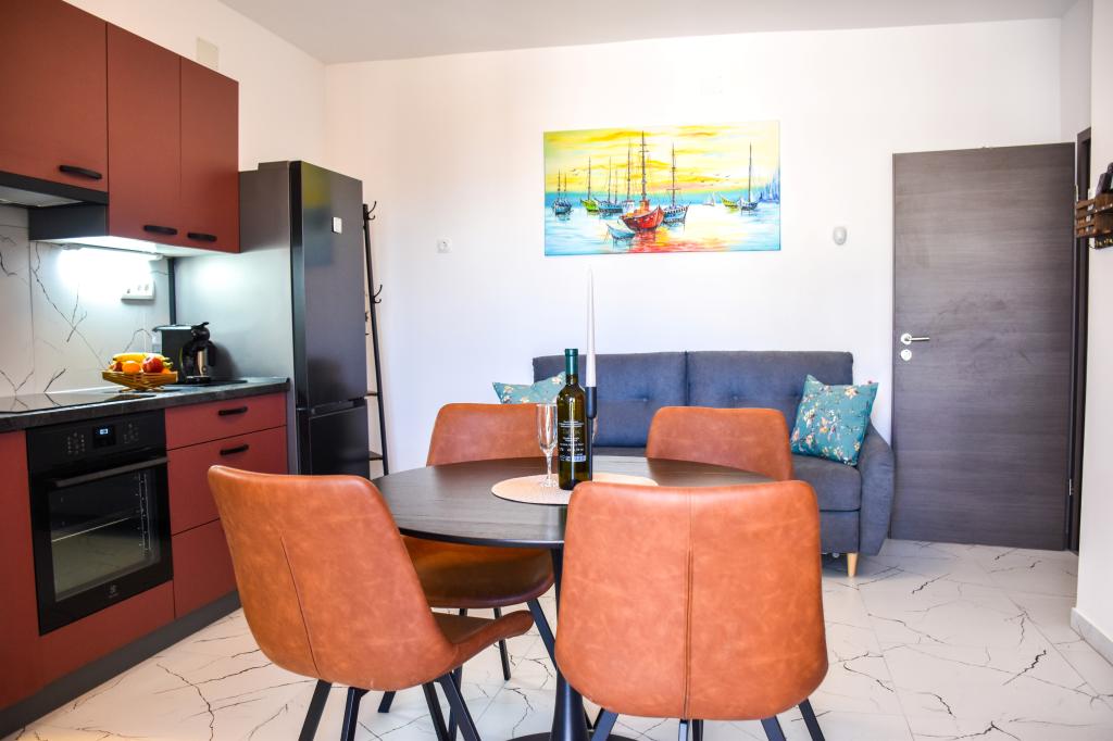 A 2+2 apartman minden tekintetben kielégíti egy négytagú család nyaralását. Szépen berendezett apartman, minden megtalálható, ami ahhoz kell, hogy otthon érezze magát. A kis dolgok sokat jelentenek. Húsvétra egy kellemes meglepetés örvendeztette meg a gyerekeket. Ezer köszönet ! A házigazdák kedvesek és nem tolakodóak. A strand, a sétány és a központ közelsége néhány percnyi könnyű séta, de mégis elég a nyugalomhoz.