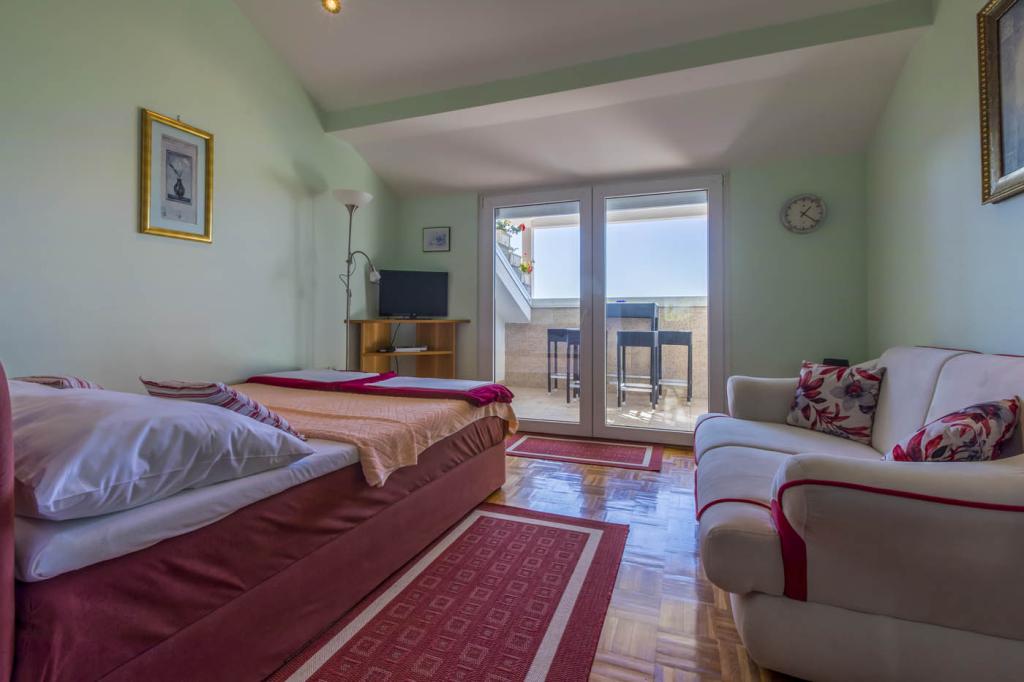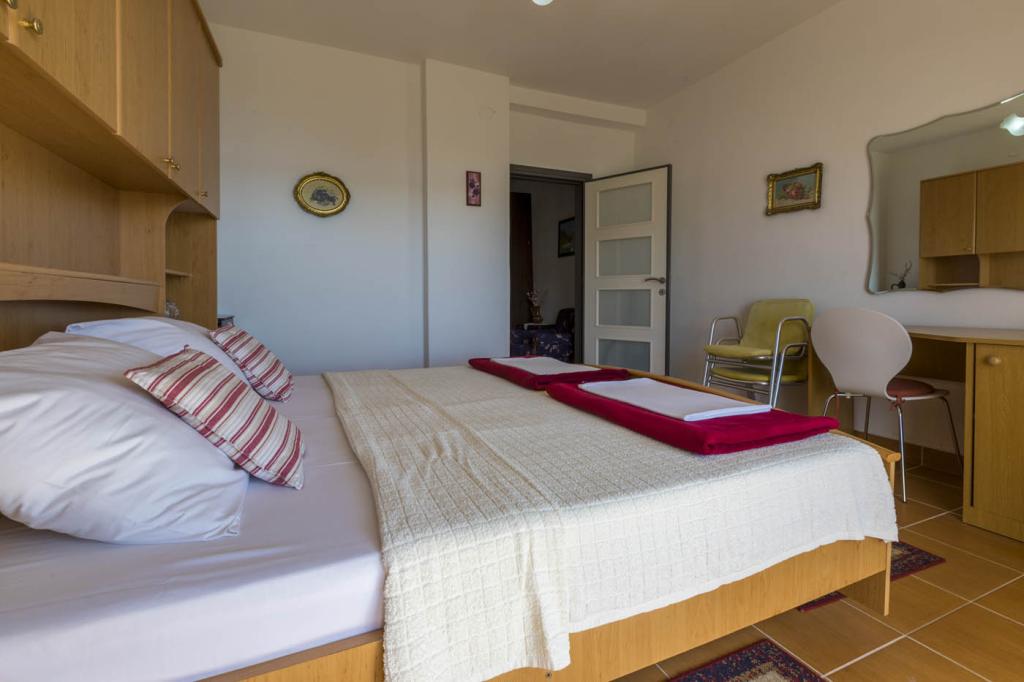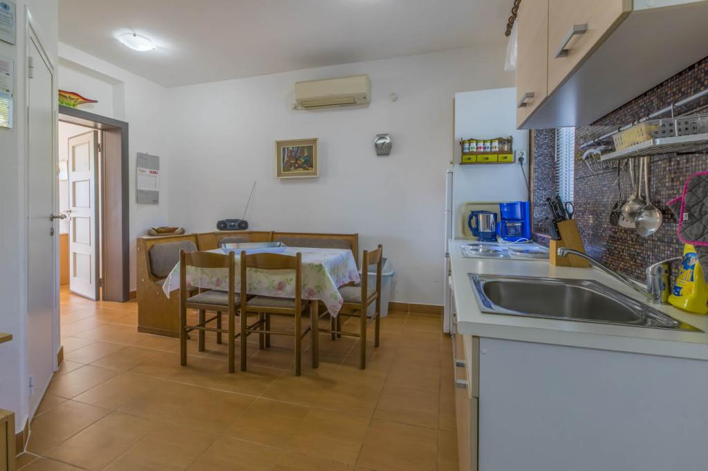 Egy gyönyörű családi ház, 80 méterre az első strandtól, 6 különálló szálláshelyből áll, amelyek három szinten helyezkednek el, mindegyik külön bejárattal és kilátással a kertre és a tengerre. A szállásegységek között kínálunk egy kétszemélyes stúdiót, egy három-négytagú család számára alkalmas nagy stúdiót, ahol a gyerekágy a galérián található (és a gyerekek imádják :)), valamint egy nagy kétszobás apartmant két hálószobával, sarokkanapéval felszerelt nappalival. A zöld udvart olajfák, fügefák és csalán díszíti, valamint egy kis, szezonális zöldségeskert is található itt. Az épület szerves részét képező parkoló a főutcáról, az udvari bejáraton keresztül közelíthető meg. A házigazdák a földszinten találhatók, és örömmel válaszolnak az esetleges kérdésekre, gondoskodnak egy extra kiságyról a babának, egy etetőszékről, kölcsönadnak valamit, ha valami hiányzik a lakásból, vagy elhárítják az esetleges meghibásodásokat.