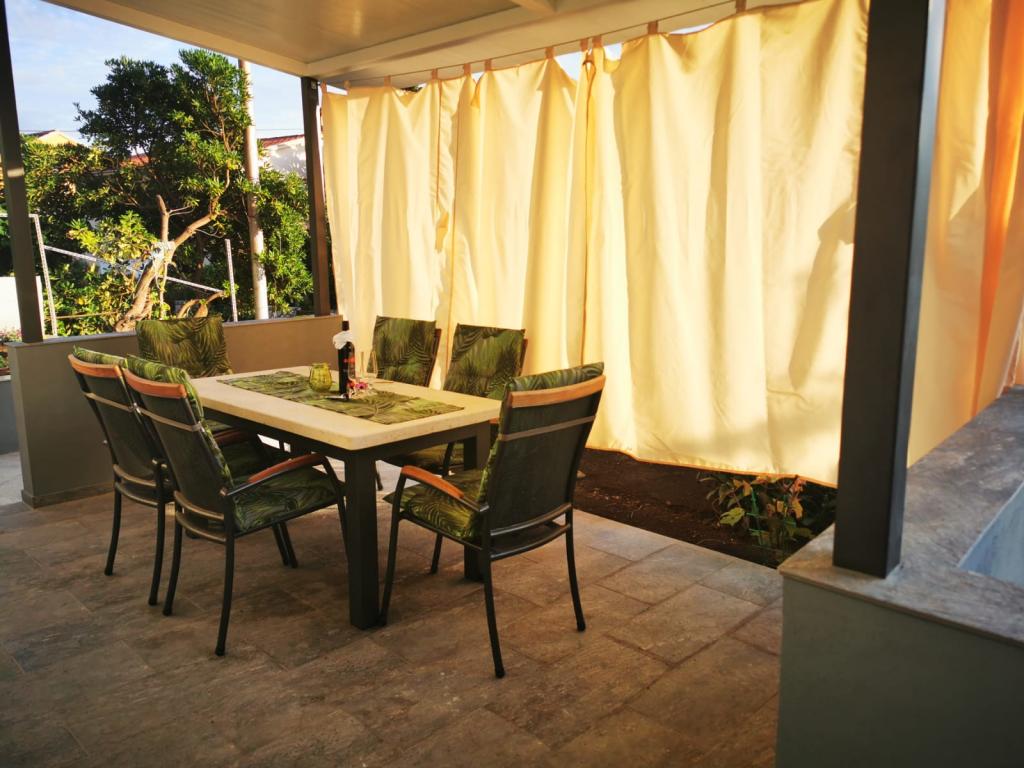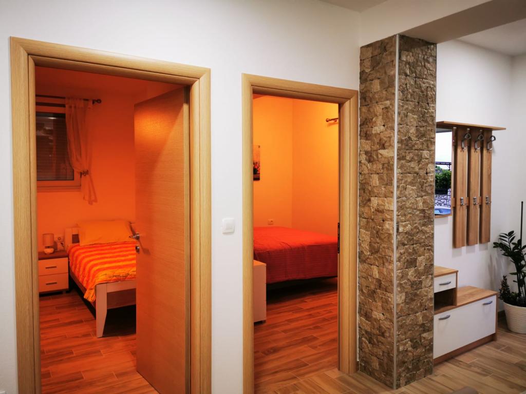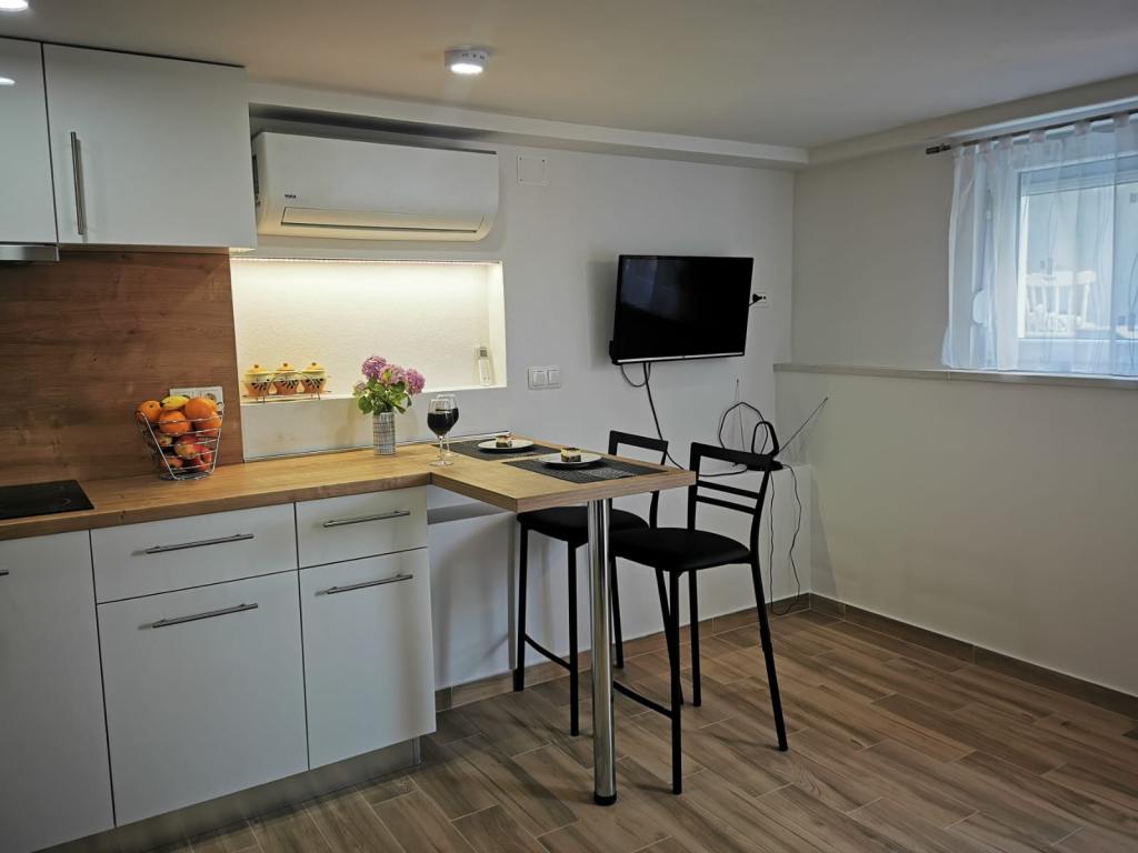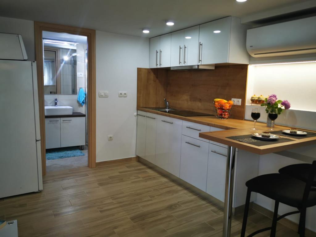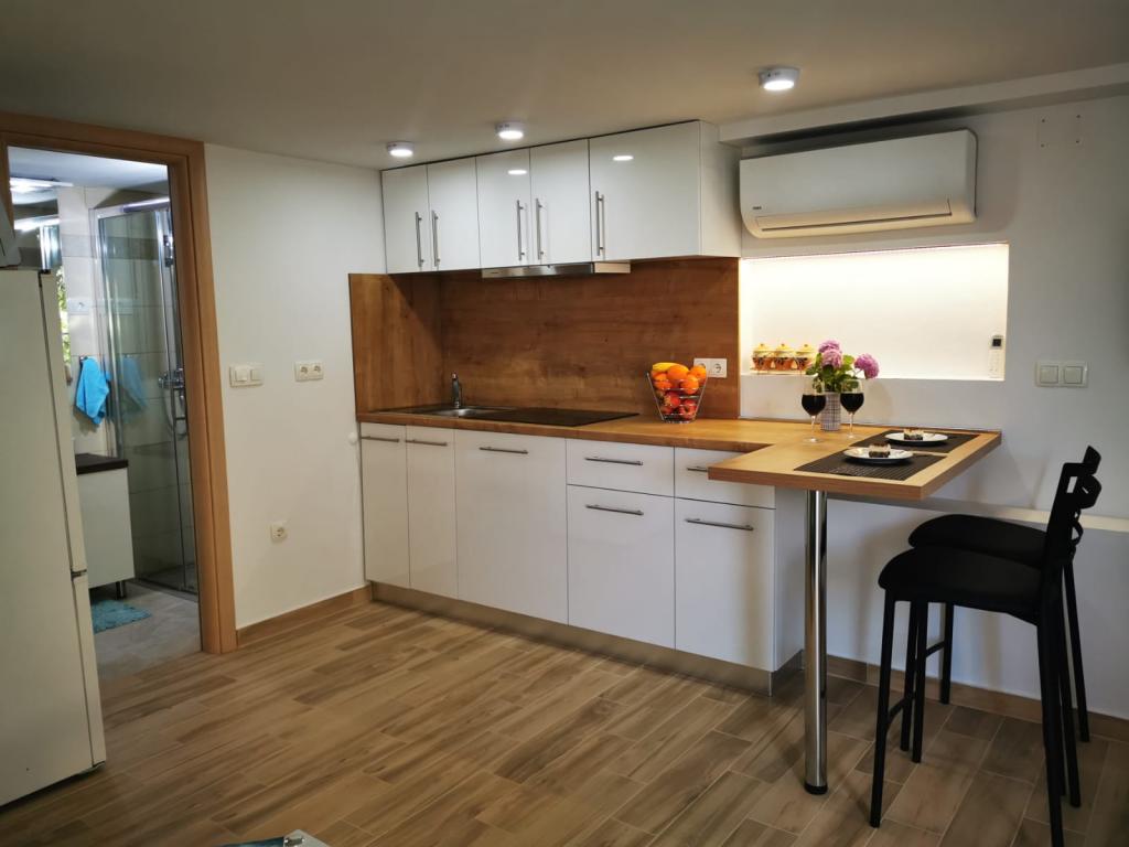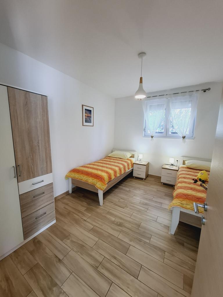 Az 1-es apartman egy családi ház földszintjén található, nagy privát terasszal és részleges tengerre néző kilátással. Teljesen felszerelt, légkondicionálóval, internettel, parkolóval. Körülbelül 300 méterre található a tengertől, a strandtól és a városközponttól. Két kétágyas hálószobából (egyikben egy franciaágy, a másikban két egyszemélyes ágy), egy nappaliból, egy felszerelt konyhából étkezővel (mosogatógép), egy fürdőszobából (mosógép) és egy külön WC-ből áll. A ház udvarában 1 autó számára parkolási lehetőség biztosított. A stúdióapartman a családi ház földszintjén (magas földszint) található. Konyhával, egy 160x200 cm-es dupla ággyal, fürdőszobával, légkondicionálóval és egy kis terasszal rendelkezik a stúdió előtt. Közös grillezési lehetőség. A Lea apartman a 2. emeleten található. 2 hálószobával, egy felszerelt konyhával, egy fürdőszobával (mosógép), légkondicionálóval és egy nagy terasszal rendelkezik, tengerre néző kilátással. A ház udvarában 1 autó számára parkolási lehetőség biztosított.