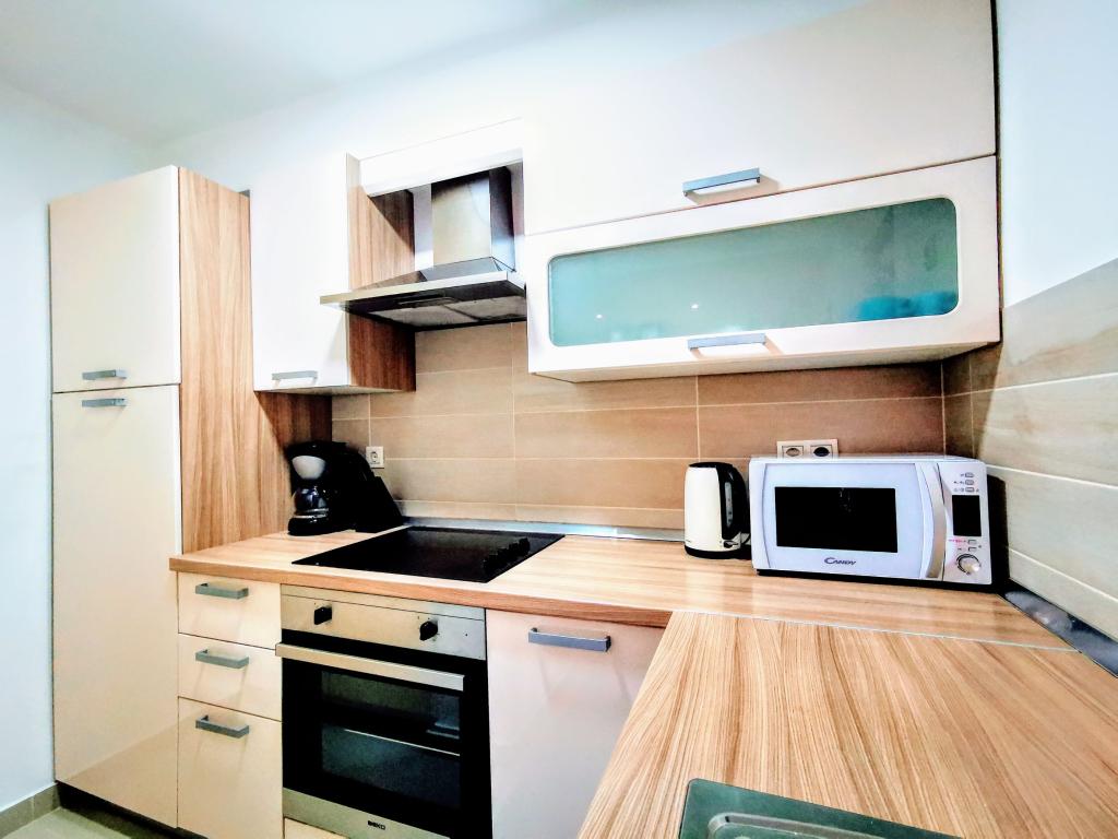 1. Egy hálószobás duplex apartman (35m2) kétszintes, és a következőkből áll: hálószoba franciaággyal, fürdőszoba zuhanyzóval; nappali konyhával (tűzhely, hűtőszekrény, vízforraló, kávéfőző...); SAT-TV, WiFi, klíma, mosógép. 2. Egy hálószobás apartman (60m2) a földszinten található, és a következőkből áll: 1 hálószoba franciaággyal, fürdőszoba zuhanyzóval, nappali kanapéval, étkező, konyha (tűzhely, hűtőszekrény, mosogatógép, vízforraló, kávéfőző, mikrohullámú sütő, kenyérpirító,...); SAT-TV, WiFi, klíma, mosodai gyöngyök. 3. Három hálószobás duplex apartman (90m2) kétszintes, és a következőkből áll: 1. emelet - 1 hálószoba franciaággyal, 1 hálószoba egy fő részére, fürdőszoba zuhanyzóval, erkély; a 2. emeleten - 1 hálószoba franciaággyal, fürdőszoba zuhanyzóval, nappali, étkező, konyha (tűzhely, hűtőszekrény, mosogatógép, vízforraló, kávéfőző, mikrohullámú sütő, kenyérpirító...), erkély; SAT-TV, WiFi, klíma, mosógép.