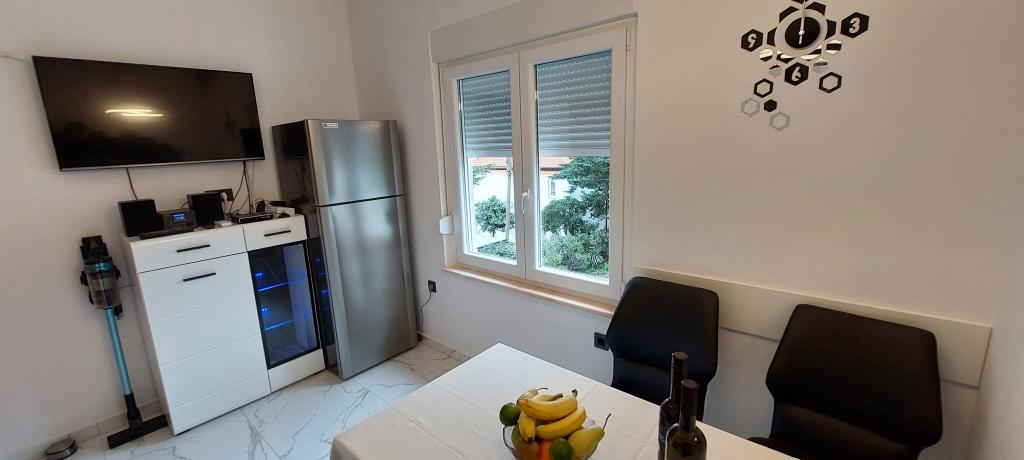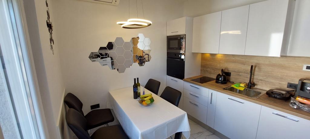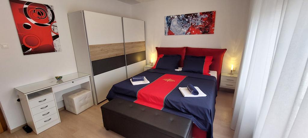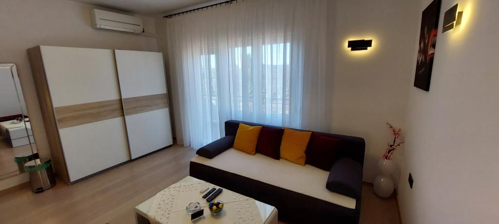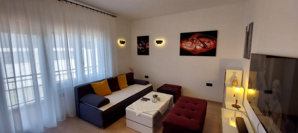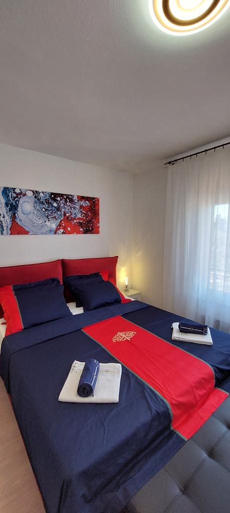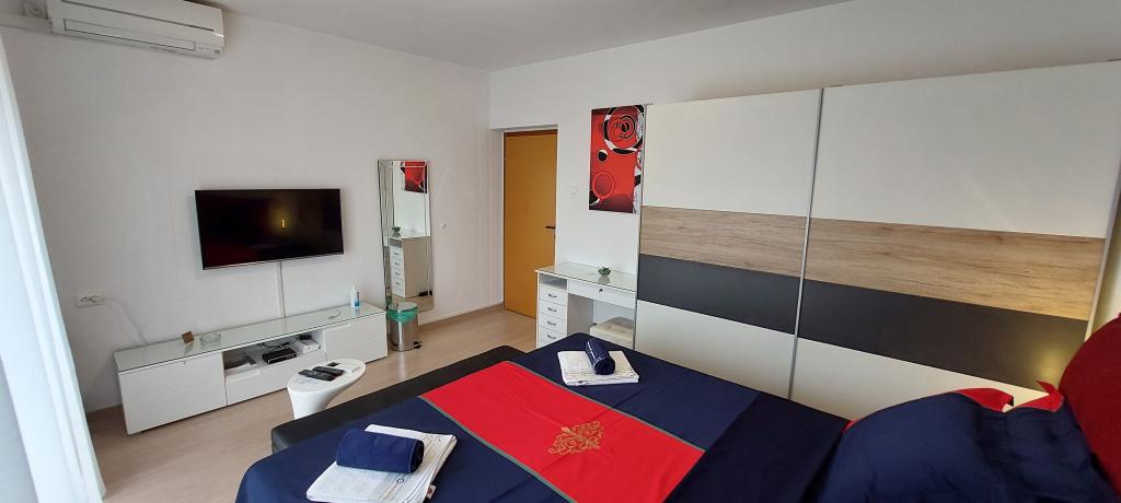 Teljesen és korszerűen felszerelt két apartman a strand közelében, a magasföldszinten (Perunika apartman) és az első emeleten (Bougenvilija apartman). Mindkét apartmanhoz két erkély és a ház előtt őrzött parkoló tartozik. Légkondicionált egy hálószoba franciaággyal, egy nappali kanapéval és egy konyha étkezővel. Az internet ingyenes. Az épület 5 perc sétára található a központtól és kevesebb, mint 2 percre (100 méterre) a strandtól.
