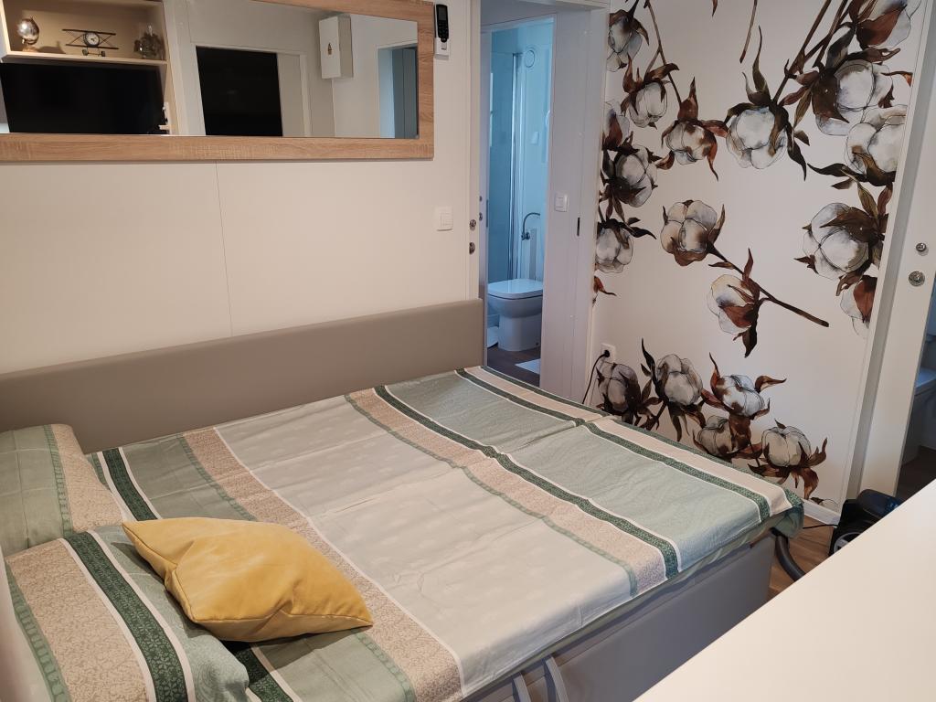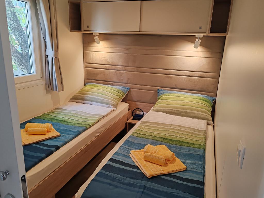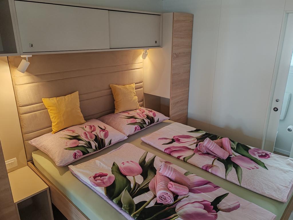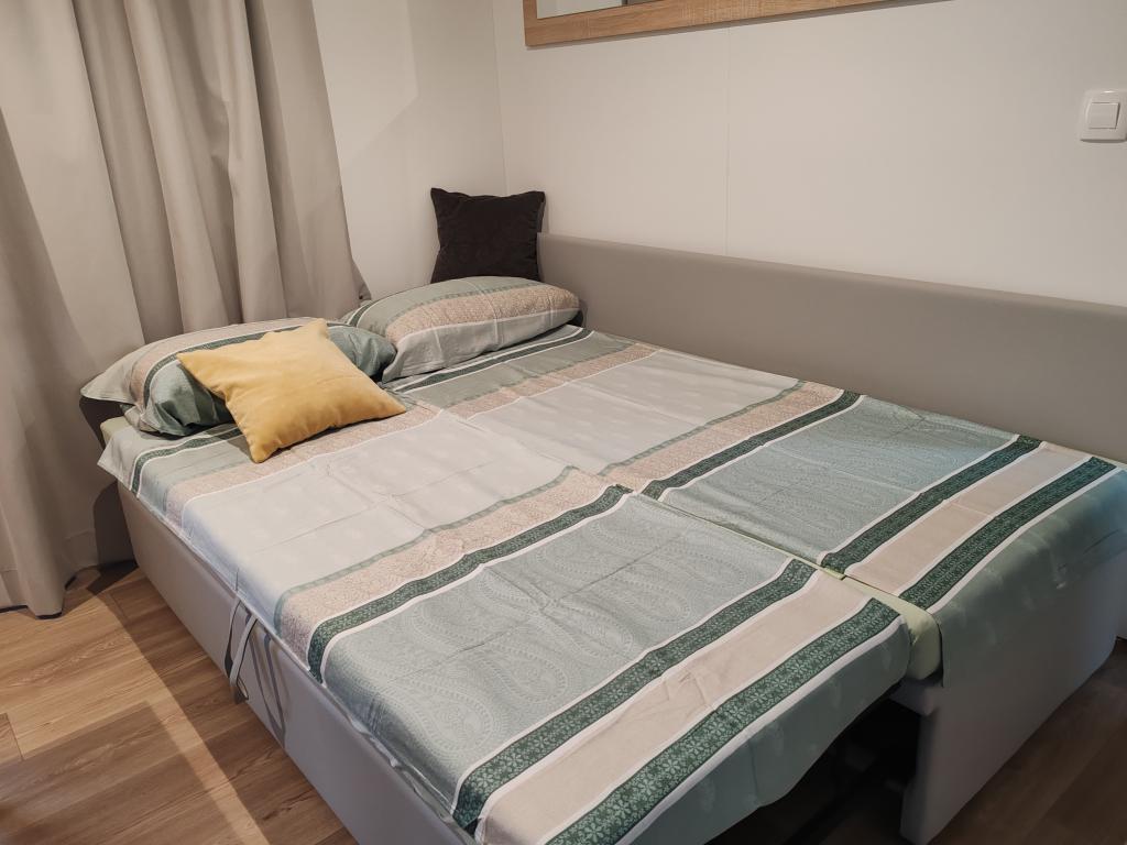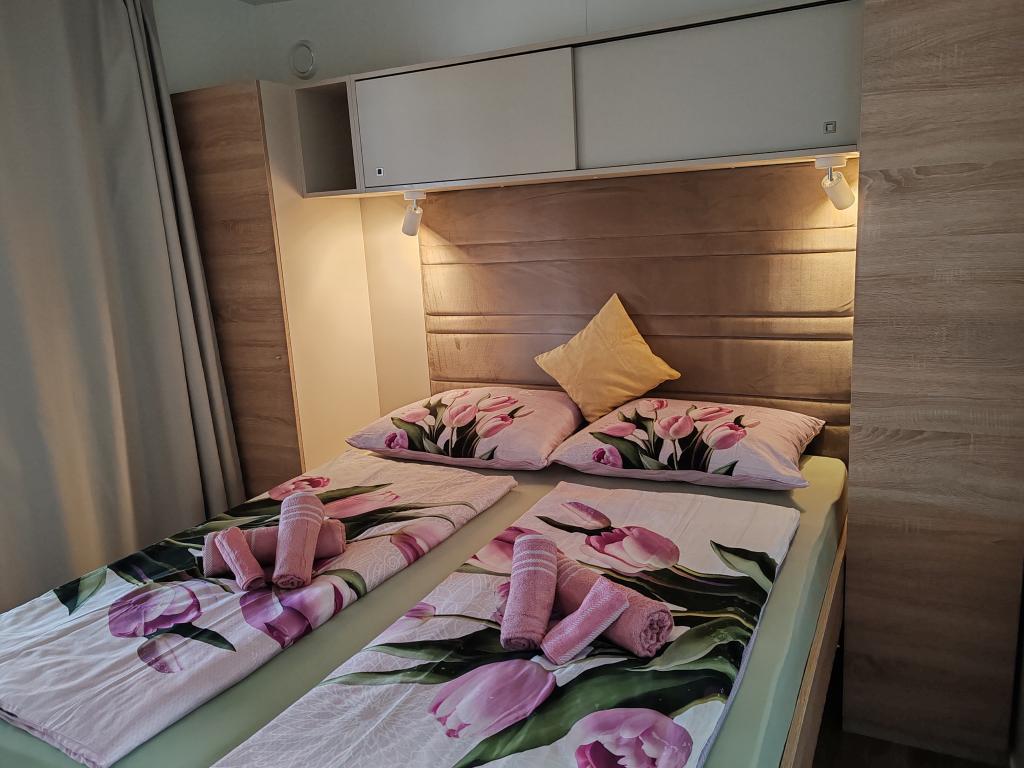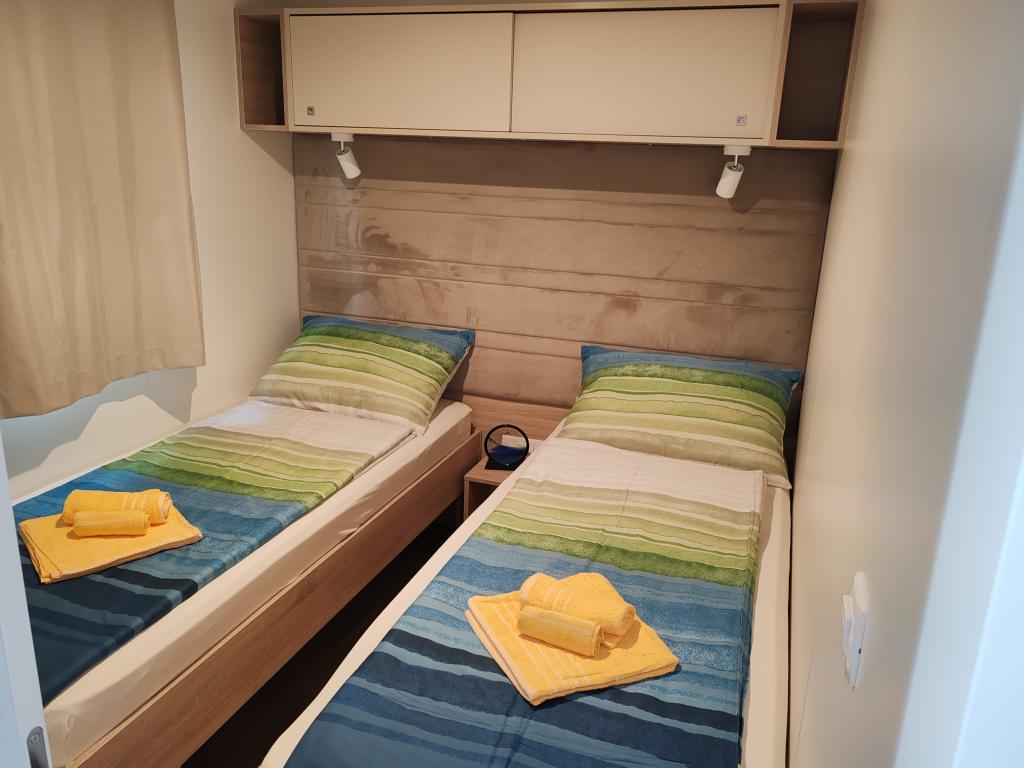 Teljesen felszerelt és modern mobilház kiváló helyen, egy ismert és jól felszerelt kempingben, amely számos szolgáltatást kínál, különösen gyermekes családok számára. A ház 32 m2-es, 2 hálószobából, egy nappaliból és egy teljesen felszerelt konyhából áll, ahol minden szükséges eszköz megtalálható, többek között mosogatógép, mikrohullámú sütő, kenyérpirító, Dolce Gusto kávéfőző és vízforraló. Két zuhanyzós fürdőszoba is található. Az egyik szobában egy 160 × 200 cm-es franciaágy található, saját fürdőszobával. A második szobában 2 db 80 × 200 cm-es egyszemélyes ágy található. A nappaliban egy kétszemélyes kanapéágy található. A terasz 29 m2-es, amelyen fűtött masszázskád és ülőgarnitúra található. A szálláshely mindennel felszerelt, amire szüksége lehet (ágynemű, törölközők, piperecikkek stb.). Szabadtéri gázgrill is rendelkezésre áll. 100 méterre található egy medencekomplexum, 250 méterre pedig egy strand. Selc központja mindössze 13 perces sétára található. Ingyenes privát parkolás és internet okostévével (Netflix, YouTube, stb.)