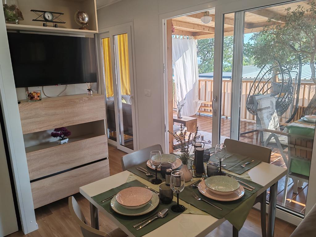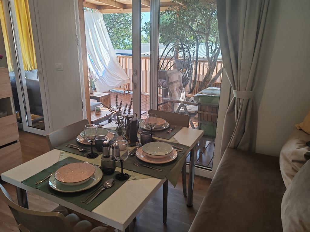 Egy gyönyörű mobilház, amelyben otthon érezheti magát, mert minőségi berendezéssel rendelkezik, az ágyaktól a konyháig és a gyönyörű teraszig, amely teljes névtelenséget kínál. A barátságos tulajdonosok is kedves fogadtatásban részesítették.