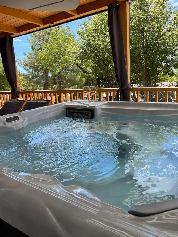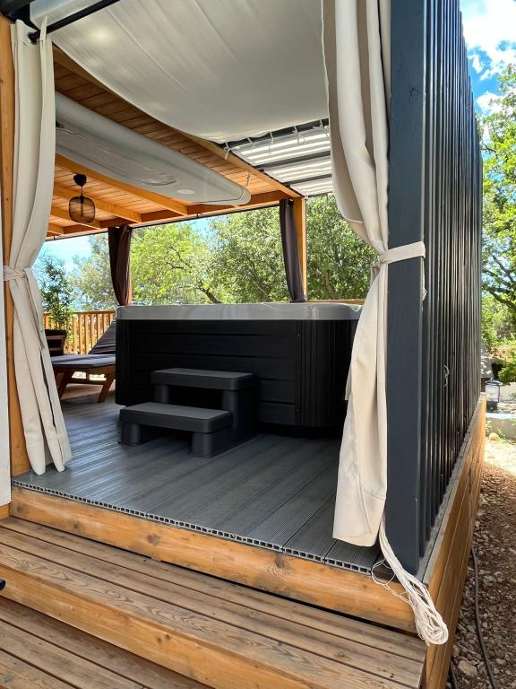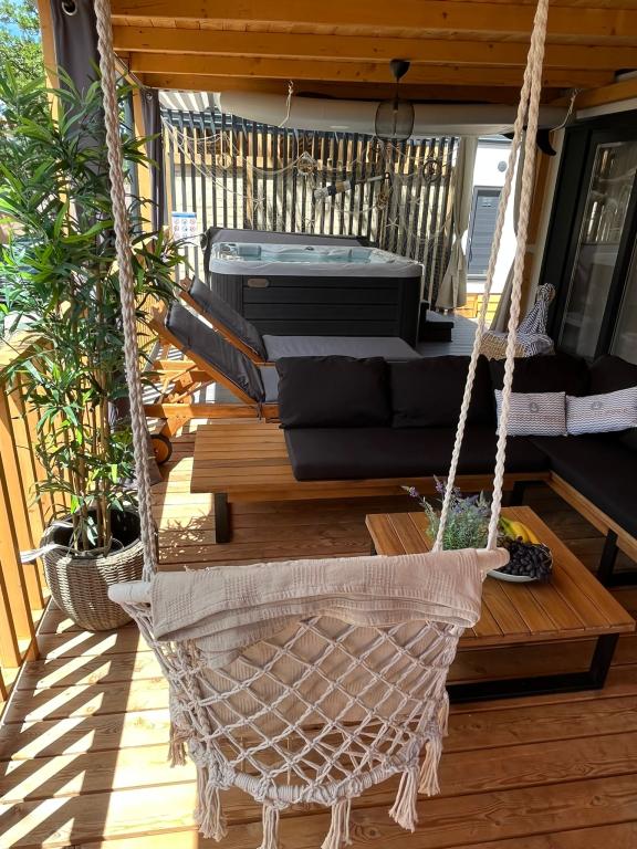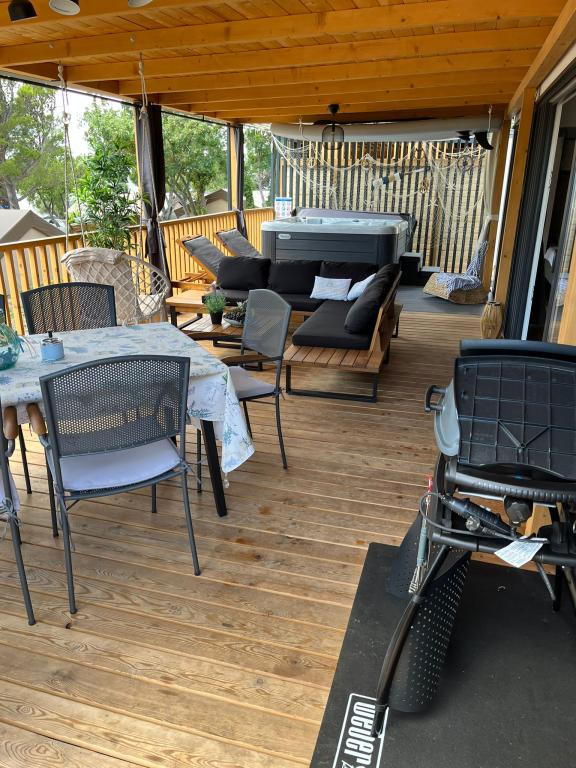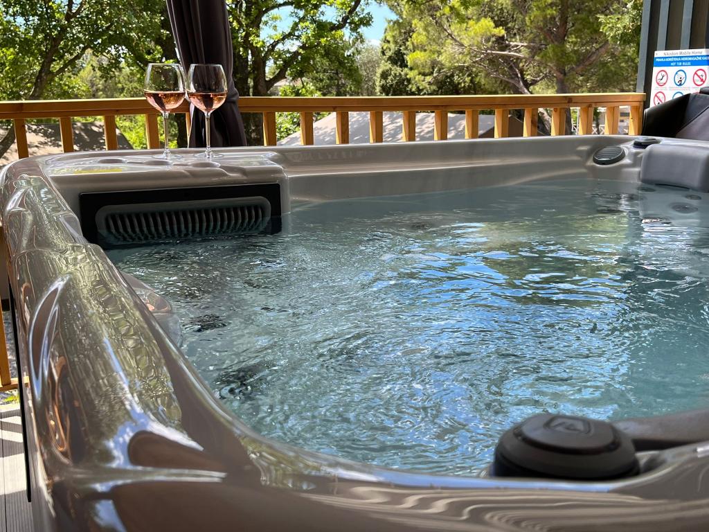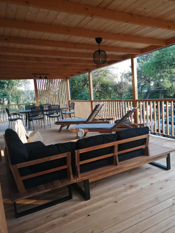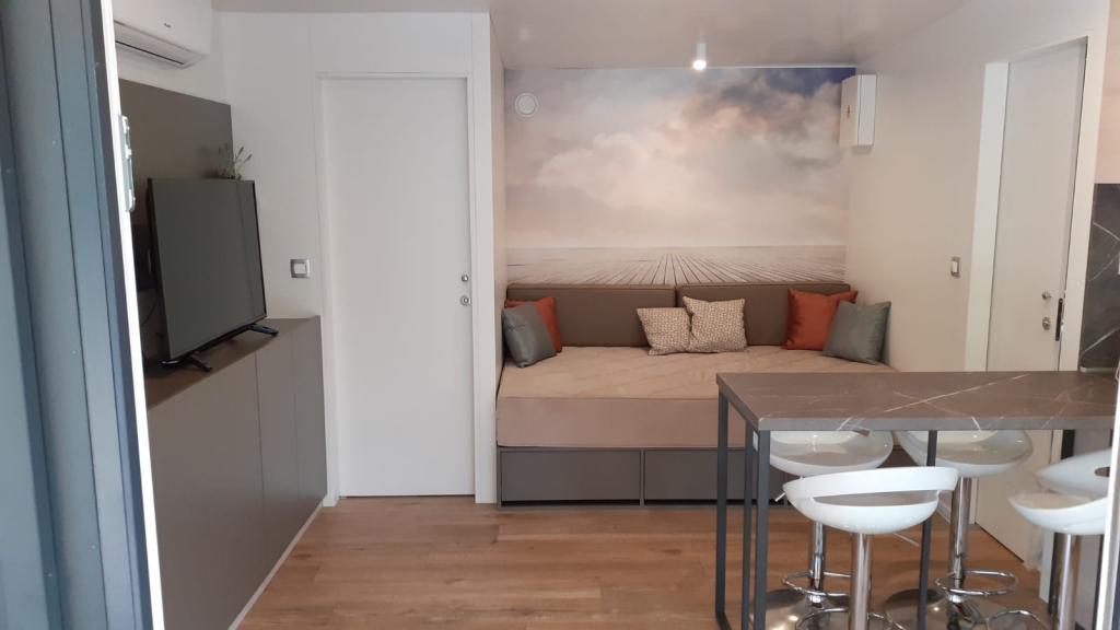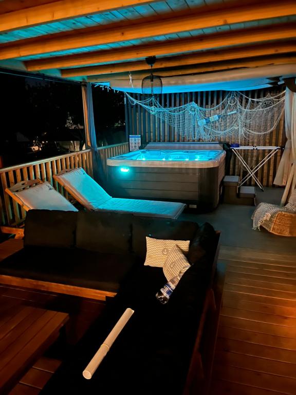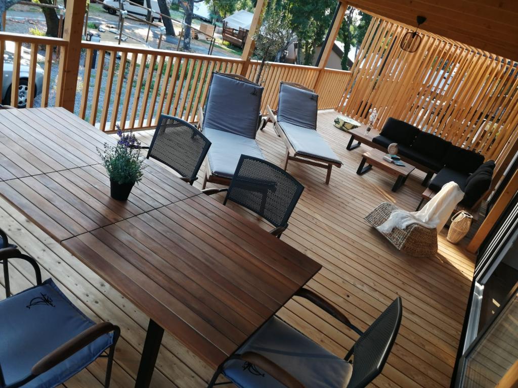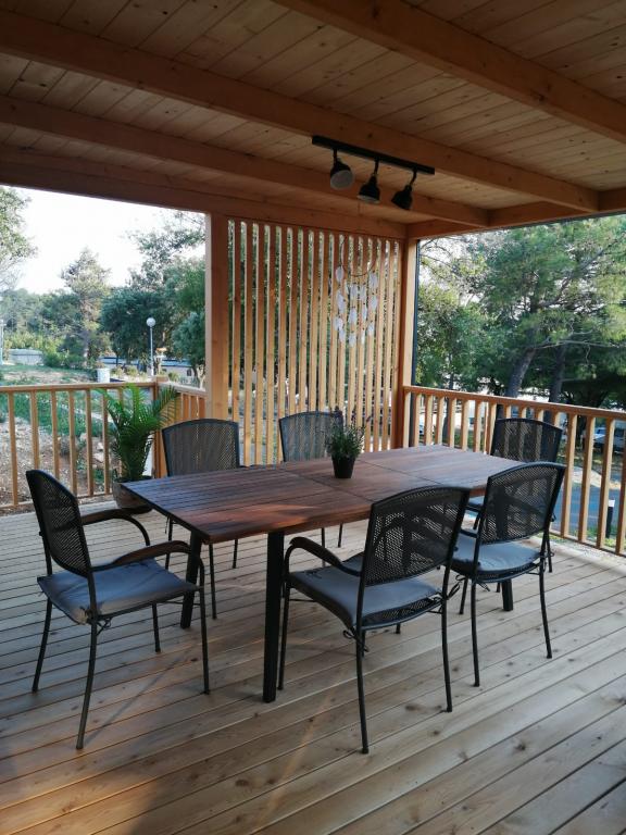 Valami másra vágyik? Szeretne pihenni a természet és a nyugalom környezetében? Valahol az ég és a tenger között van az új mobilházunk. Pontosabban az Elements táborban található Selc csendes részén, és mindenki számára ideális a nyaraláshoz. Tágas telken a tenger közvetlen közelében, egészen pontosan 120 méter! Az érintetlen természet csendjében a házat úgy helyeztük el, hogy úgy nézzen ki, mint egy színpad a gyönyörű tengerre, napra és Krk szigetére. A házat természet veszi körül. Kezdje a napot a teraszon tücskök hangjával és a tenger illatával. 45 m2-en egy étkezőasztal és egy sarokkanapé a pihenéshez, valamint két kényelmes nyugágy található. A terasz oldalán grillező áll a vendégek rendelkezésére. A ház belseje mindent kínál, így a mediterrán stílusú kényelemben és kikapcsolódásban sem lesz hiány. Két hálószoba, fürdőszoba, teljesen felszerelt konyha, légkondicionáló, Internet, TV. Ideális akár 6 fő részére! Csukja be a szemét, és képzelje el, hogy egy gyönyörű helyen vagy az Adria ragyogó vizével körülvéve. Lakomázzon velünk, és pihentesse lelkét és testét.