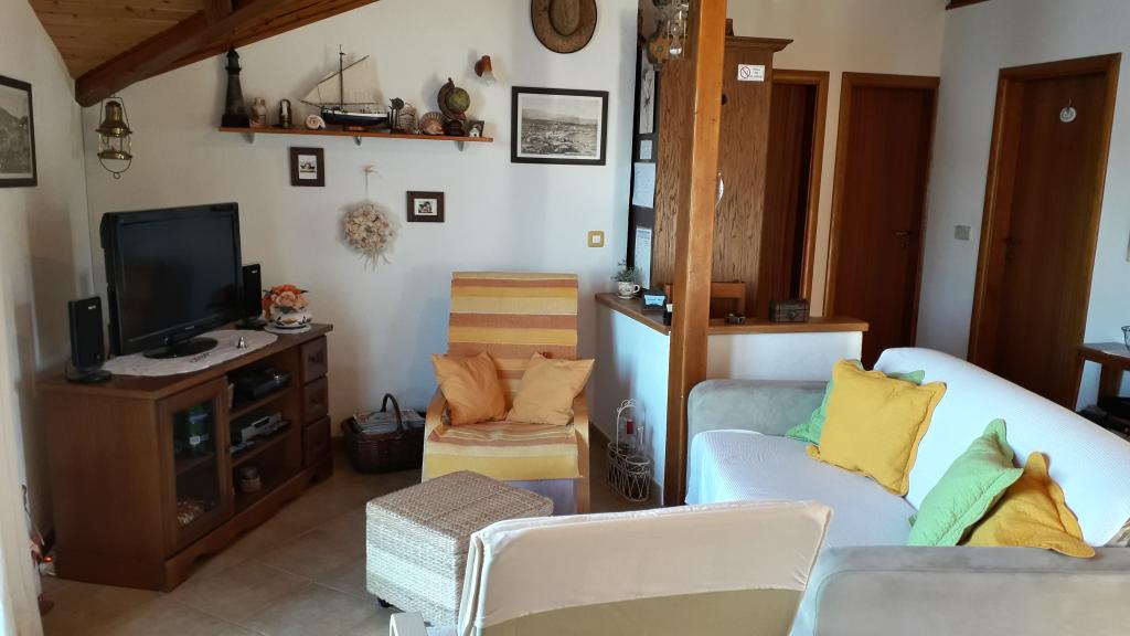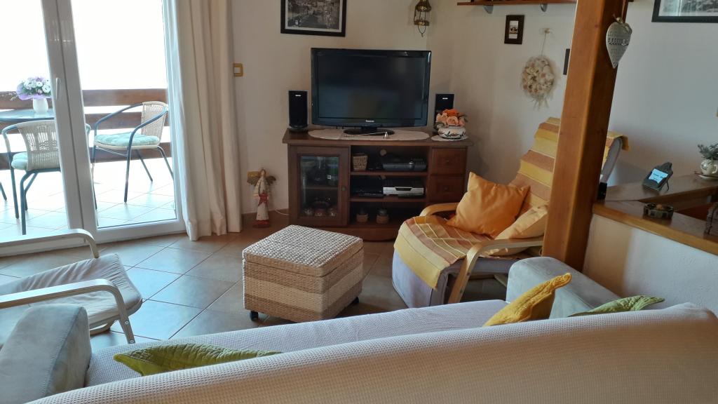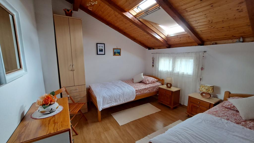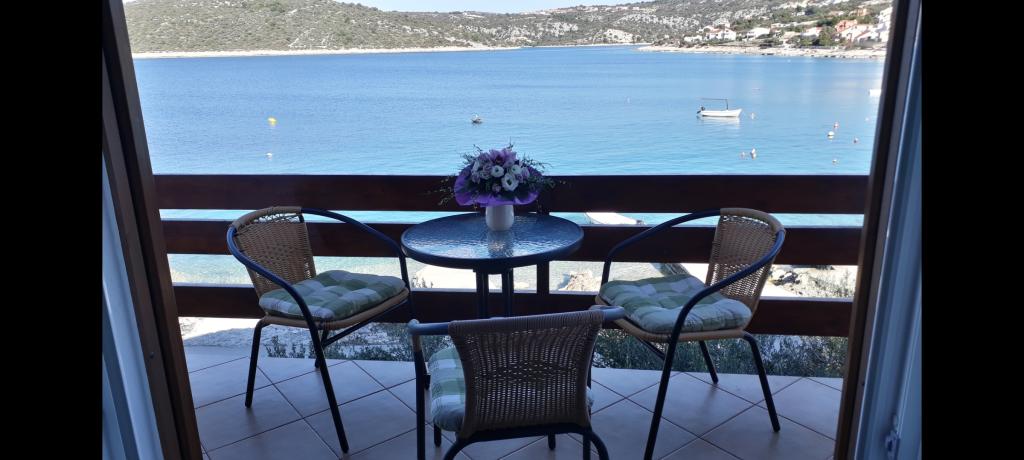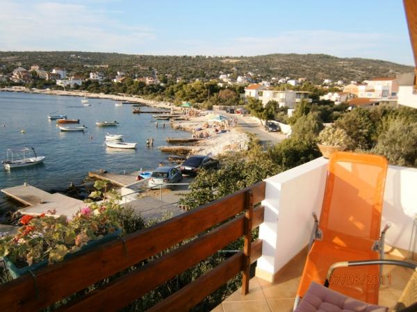 Tágas, két hálószobás apartman az első emeleten, nagy nappalival és erkéllyel, ahonnan kilátás nyílik a tengerre (10 méterre) és az egész öbölre. A városközpontban található, amely a béke és a családi kikapcsolódás oázisa. A közelben étterem, kávézó és piac található. A kellemes tartózkodáshoz légkondicionáló, wifi és műholdas TV áll rendelkezésre. Az apartman előtt található egy betonozott strand kristálytiszta vízzel, napernyőkkel és nyugágyakkal, a kavicsos strand pedig 150 méterre található.