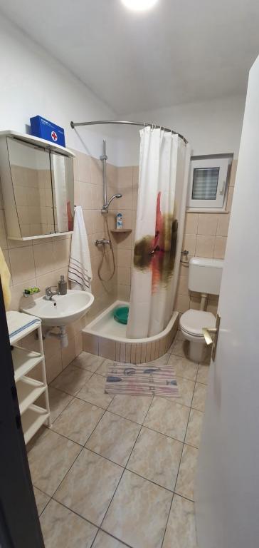 Remek, hűvös hely. Gyönyörű kilátások. Gyönyörű, tiszta és nagyon kényelmes apartman, jól felszerelt és ízléses. Nagyon kedves házigazdák, nagyon segítőkészek. A strand nagyon közel van, napozóágyakkal és zseniális napernyővel felszerelt. Meleg víz. Csodálatos és nagyon ritka lehetőség Horvátországban sétálni a tengerparton. Vásárolni a közeli önkiszolgáló üzletben vagy a standokon lehet. Szívből ajánljuk. Biztosan visszamegyünk oda.