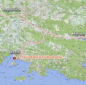 Radačić apartmanok találhatók egy kis faluban Sevid. Távol a zaj a mindennapi városi területek, ez a kis település kínál az érintetlen természet, a kristálytiszta víz és csendes környéken. A közeli UNESCO által védett városa gazdag múlttal és érdekes látnivalók, Split, Trogir, Sibenik és a nemzeti parkok Krka és a Kornati. Kínálunk szállást két apartman. Apartman A4 van felszerelve, két kétágyas hálószoba, fürdőszoba (zuhany / WC) és konyha / nappali kanapéval egy személy. Apartmanok A4 +2 két kétágyas hálószoba, konyha / nappali kanapéval két ember, és a két fürdőszoba (zuhanyzó / WC). Az apartmanok mindegyike SAT / TV, külön terasszal, kertkapcsolattal grillezési és egy szabad parkolóhely. A strand kevesebb, mint 20m-re a házat, és a ház maga az első sor a tengertől. A közvetlen közelében éttermek, kávézók és üzletek. A vendégek használhatják a kis hajó, egyetértésben a tulajdonos (felár ellenében).