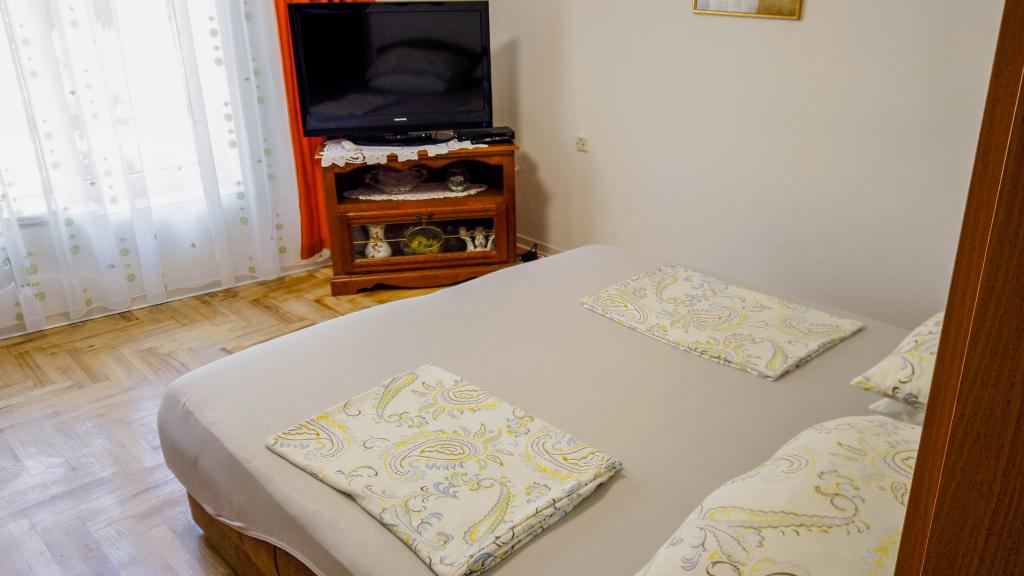 Apartmanok Brigita vannak a családi házban, a közepén Sibenik, közel a piac, buszmegálló és a régi városrész mindössze húsz percre a városi strand. Kínálunk szállást egy szoba az első két ember a lakásban két második és harmadik suite két fő részére két pótággyal. Minden egység modern standard felszerelés, amely magában foglalja a televízió, légkondicionáló, wi-fi internet, teljesen felszerelt konyha, fürdőszoba és WC. A környéken 100 és 200 m található pékség, városi piac, áruház City Life, ATM, posta, orvos, gyógyszertár, pénzváltás, üzletek, étterem, kávézó, pizzéria, busz-és vasútállomásokon. Így a vendégek ingyenesen parkolhatnak a nyilvános parkoló a ház közelében. A gyerekek szívesen. A gyermekeknek két éve, hogy van egy utazási gyermekágy.