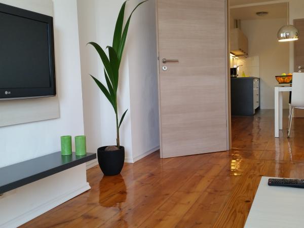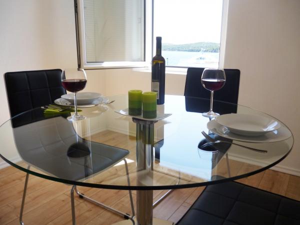 Modern apartman gyönyörű kilátással a sétányra. Nagyon tiszta és szépen berendezett, a helyszín nagyszerű (néhány perc sétára elérhetők az üzletek, pékség, komp...). Van egy közös helyiség mosógéppel és mosogatógéppel, ami nagyon praktikus és hozzájárul a pihenéshez. A tulajdonosok nagyon kedvesek és segítőkészek, minden dicséret és ajánlás erre az apartmanra!