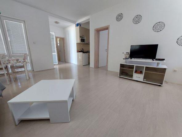 A tágas és modern berendezésű, tiszta lakás. Beach napozóágyakkal és a tenger előtt. Egy csendes hely egy igazi nyaralás.