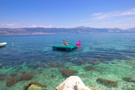 A Katarina Apartments Ciovo szigetén található, Trogirtól 5 km-re, a Slatina bejáratánál Ciovo szigetét egy híd köti össze Trogirral, és egy 30 perces hajóvonalon keresztül Splitbe. Az apartmanok egy csendes, napos lejtőn helyezkednek el a strandtól 150m-re. Egy zárt kert veszi körül olajfákkal, szőlővel és más mediterrán gyógynövényekkel. Az A6 1 apartman 72 m2-es, 3 hálószobával, konyhával, nappalival, 1 fürdőszobával és külön WC-vel rendelkezik. Az apartman két tágas erkéllyel rendelkezik, kilátással a tengerre. Az A2 2 apartman 43 m2-es, 1 hálószobás, nappali konyhával, 40 m2-es fürdőszoba terasszal rendelkezik, kilátással a Kastela-öbölre és Splitre. Parkolás az udvarban biztosított. Az udvaron grill, kerti bútor és kerti tusoló található közös használatra. Mosógép használata.