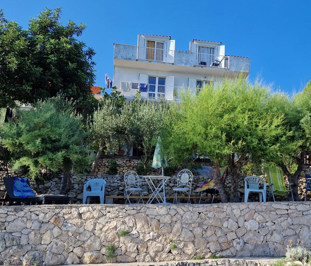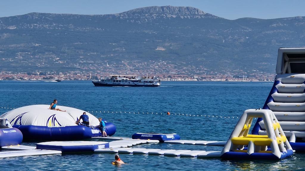 Az apartmanok csendes környezetben, az első sorban találhatók a tenger felé. Parkolás biztosított. Tíz percnyi sétára vannak Slatina városától, ennyivel lehet eljutni a piacra. Trogir és Split is fél óra alatt elérhető hajóval. A repülőtér fél óra autóútra van. Az apartman ára tartalmazza az idegenforgalmi adót, az ingyenes parkolást, a korlátlan klímahasználatot, a takarítást. A minimális tartózkodási idő öt éjszaka. Gyere és élvezd a tengert és a napot...