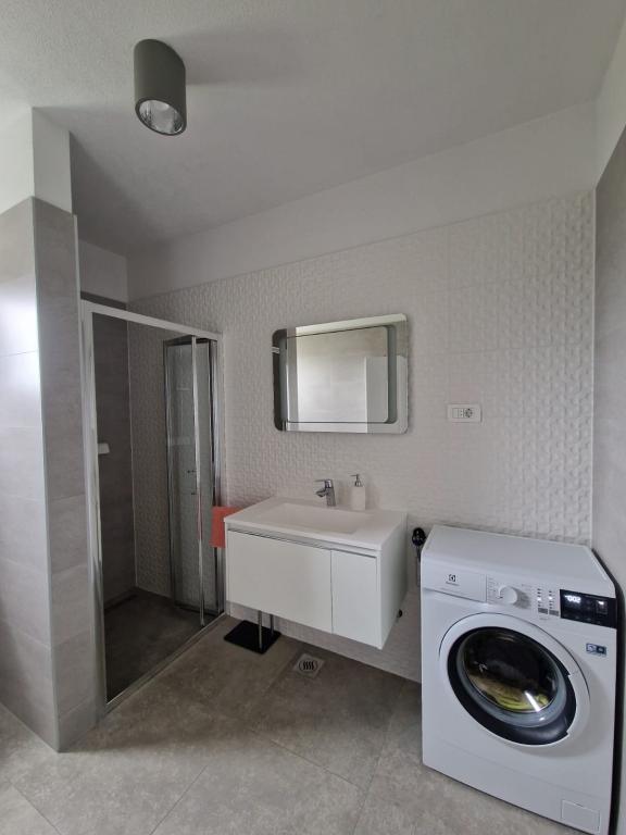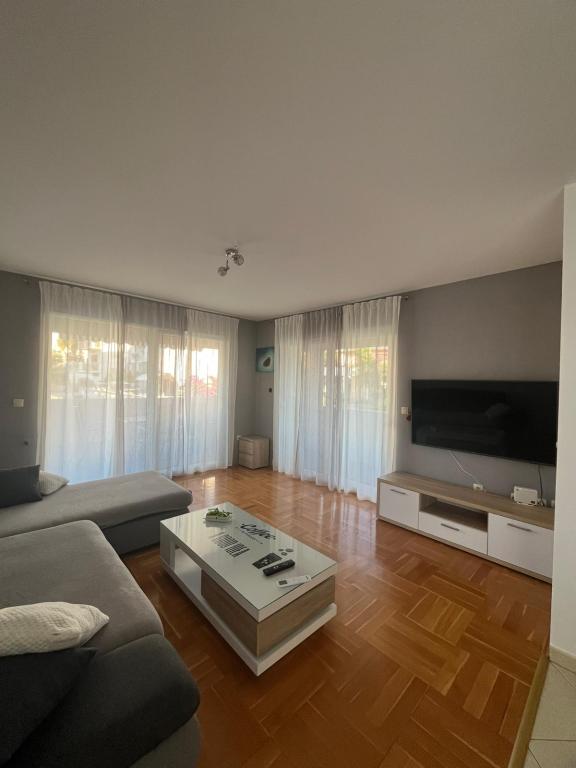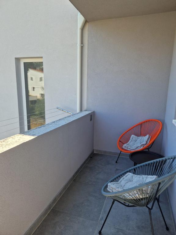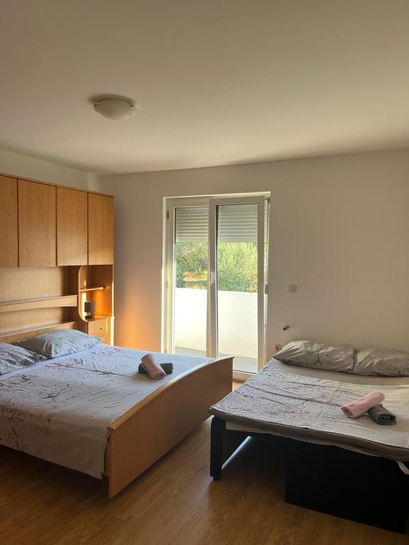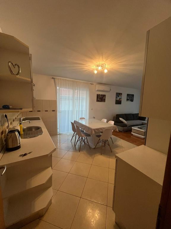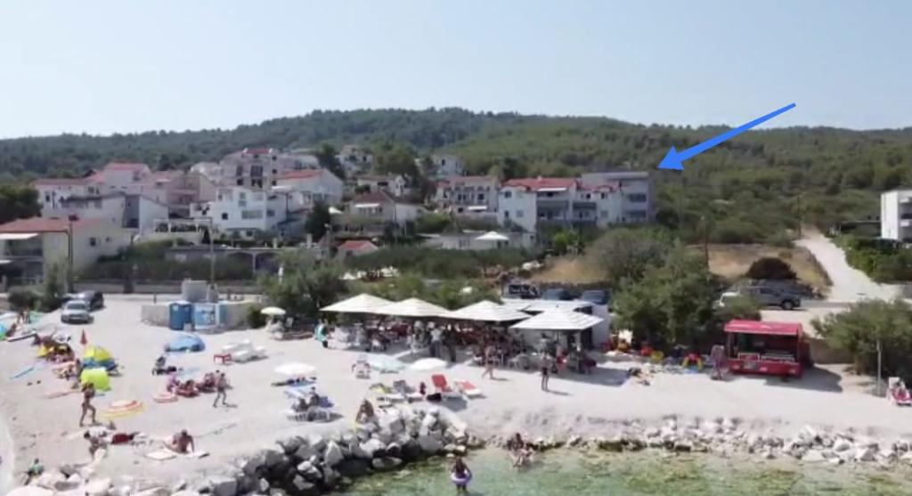 Az apartman található, egy csendes helyen, a falu Slatina. A település központjától 2 km-re. Utazási távolság a strandtól 60m. A lakás három szoba, konyha, étkező, nappali, fürdőszoba ... Azt internet, műholdas, mosógép, mosogatógép, ...