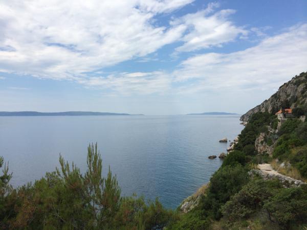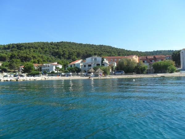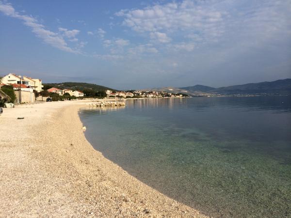 Az apartmanok nagyon közel találhatók a strandhoz, gyönyörű kilátással a tengerre. Nagyon tiszta, minden szükséges dologgal felszerelve. A tulajdonos nagyon kedves, segítőkész és törődik a vendégeivel. Gondozott strand finom kavicsokkal és szabadtéri zuhanyzóval. Csendes környéken elhelyezve. A közelben azonban bárok, éttermek és egy vízi játszótér található. Közel a trogiri és spliti kirándulásokhoz. Tömegközlekedéssel és komppal lehet eljutni.