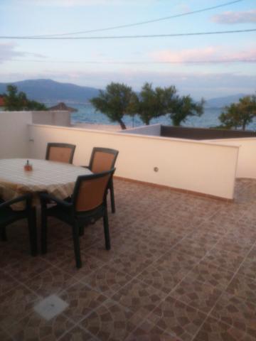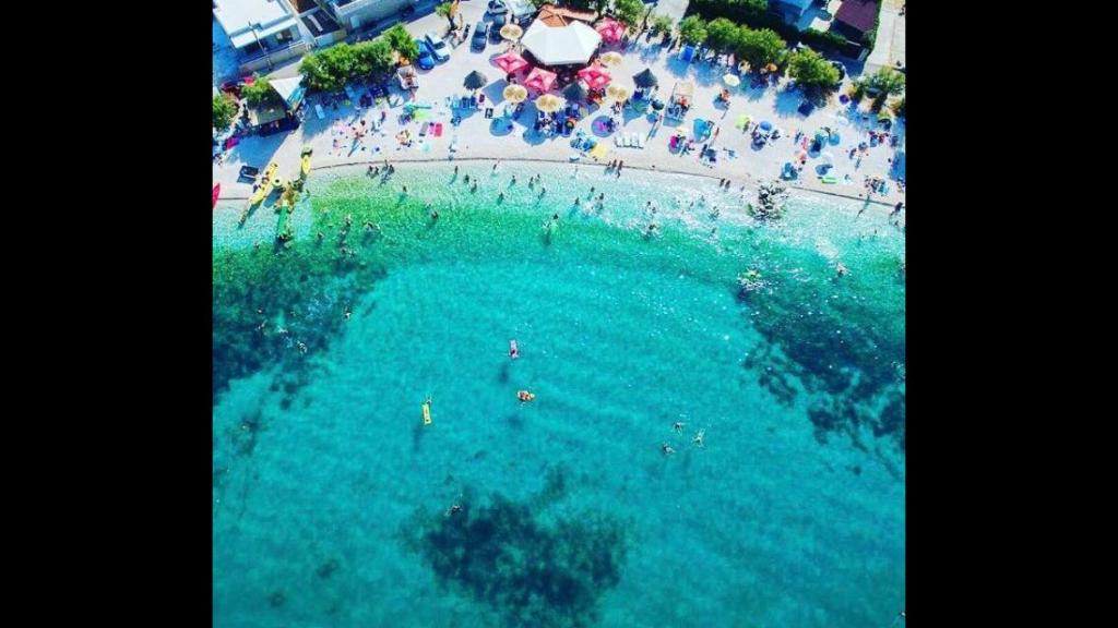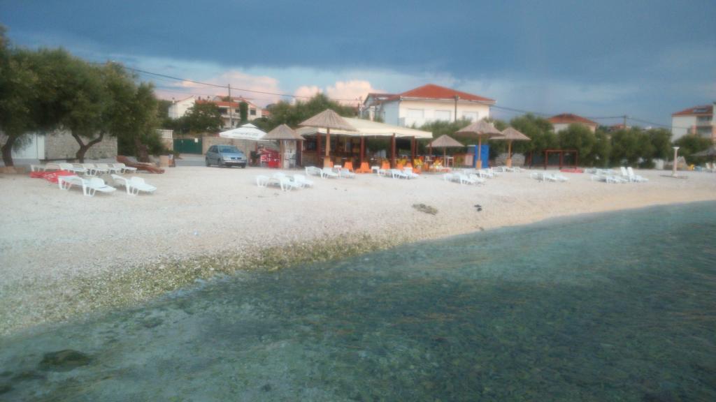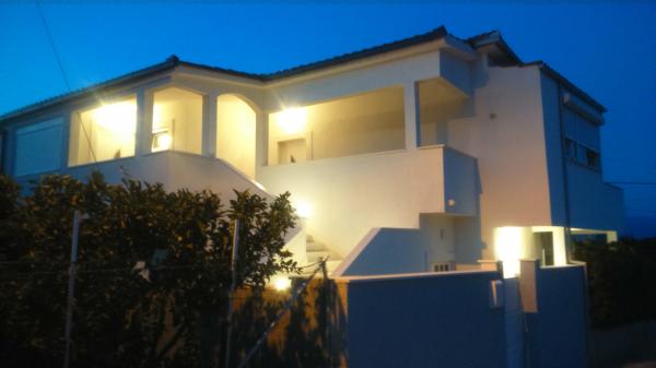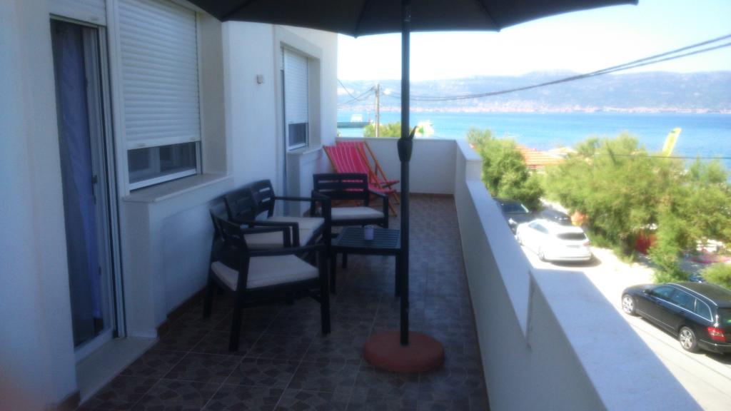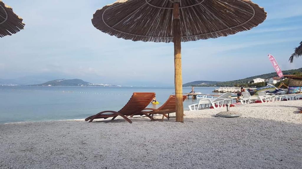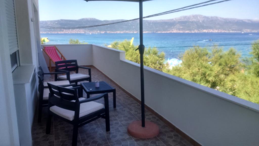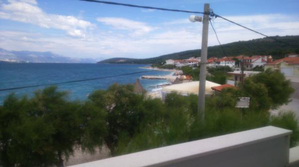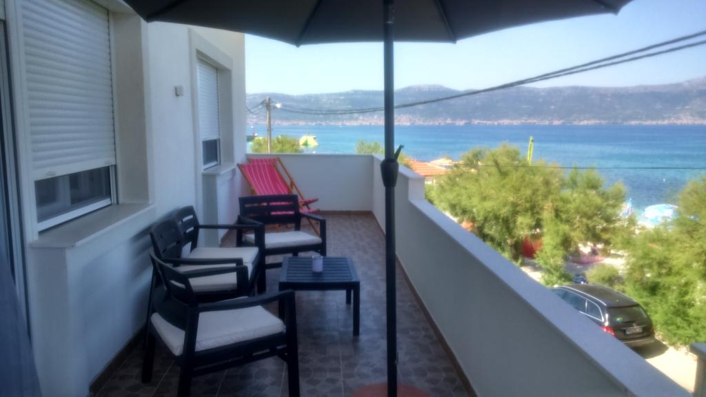 Az apartmanok családi házban vannak, első sorban a tenger felé, két apartman a földszinten és egy az emeleten. Az apartmanok nagyok, felszerelve mindazokkal, amelyek szépé és élvezetesebbé teszik nyaralását. Két nagy parkolóval, egy nagy fedett terasszal, egy tengerre néző terasszal és erkéllyel rendelkezik, ahonnan gyönyörű kilátás nyílik Splitre és a tengerre. Az apartmanok légkondicionálással, TV-vel, internettel, mosógéppel, mosogatógéppel, törülközőkkel és külön fizetendő ágyneművel rendelkeznek. Tíz perc sétára a bolt, pékség, étterem, hajó dokk, amely Splitbe és Trogirba megy. A földszinti apartmanok mozgássérültek számára rámpa, kültéri zuhanyzóval és grillgel vannak ellátva, a strand öt méterre található az út túloldalán.