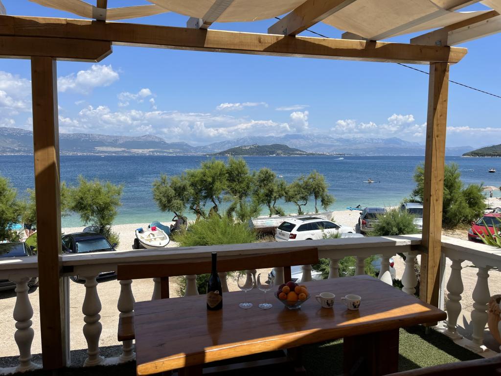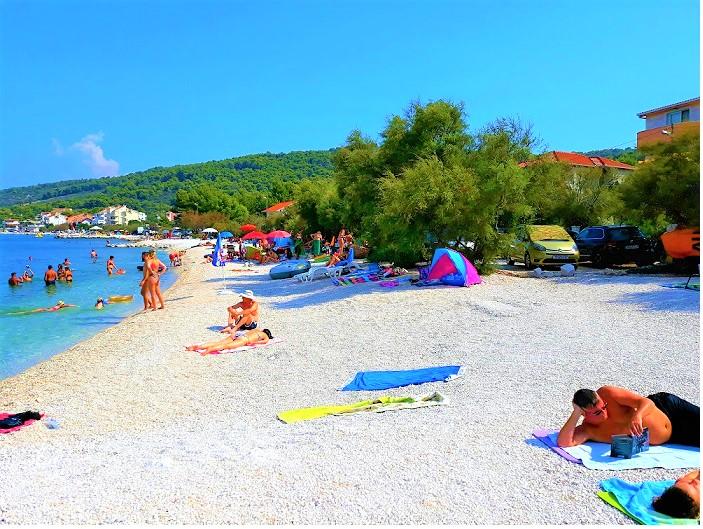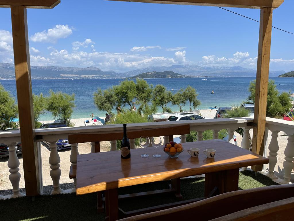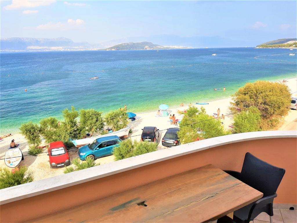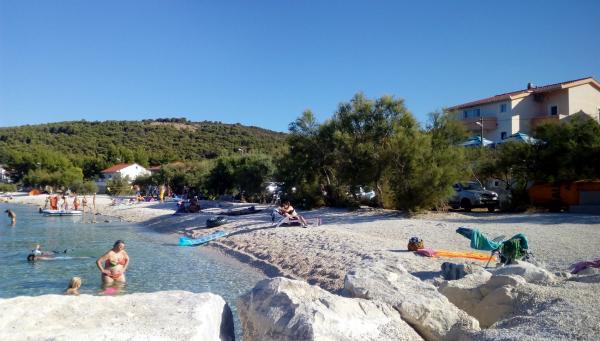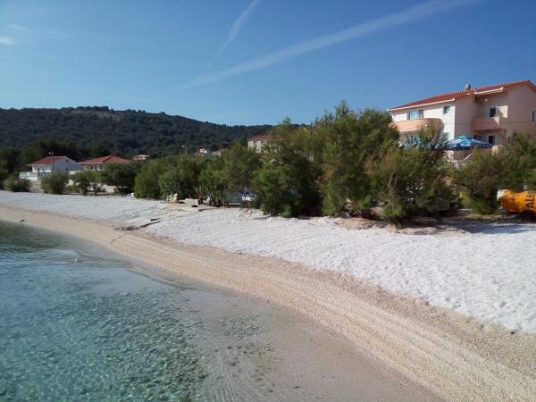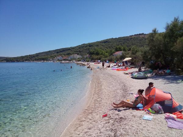 Az apartmanok a strand közvetlen közelében találhatók, mindössze 10 méterre, gyönyörű kilátással a tengerre. Nagyon tiszták, minden szükséges dologgal felszereltek. A tulajdonos nagyon kedves, segítőkész és gondoskodik a vendégeiről. Rendezett strand finom kavicsokkal és kültéri zuhanyzóval. A hely csendes környéken található. Ugyanakkor közel van bárokhoz, éttermekhez és egy vízi játszótérhez. Közel van a trogiri és spliti kirándulásokhoz. Tömegközlekedéssel és komppal is megközelíthető.