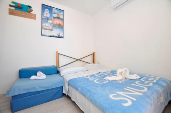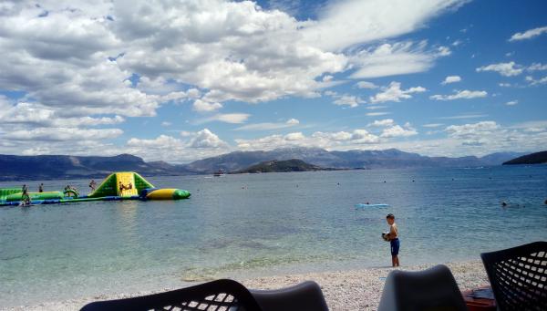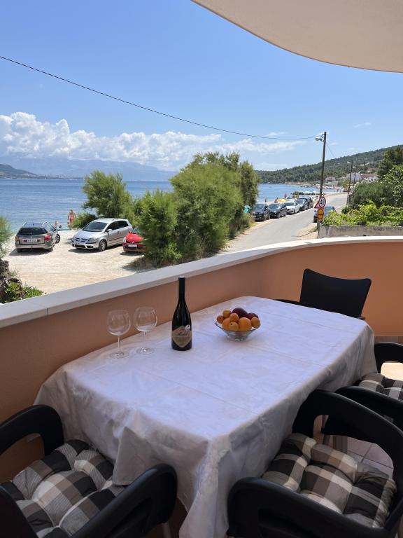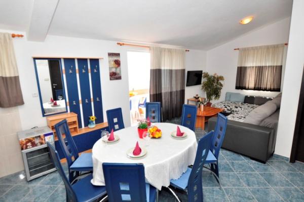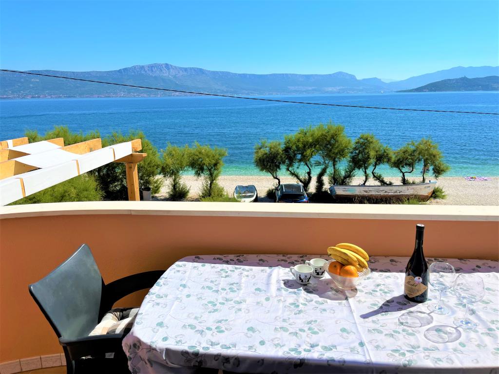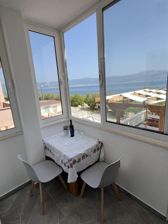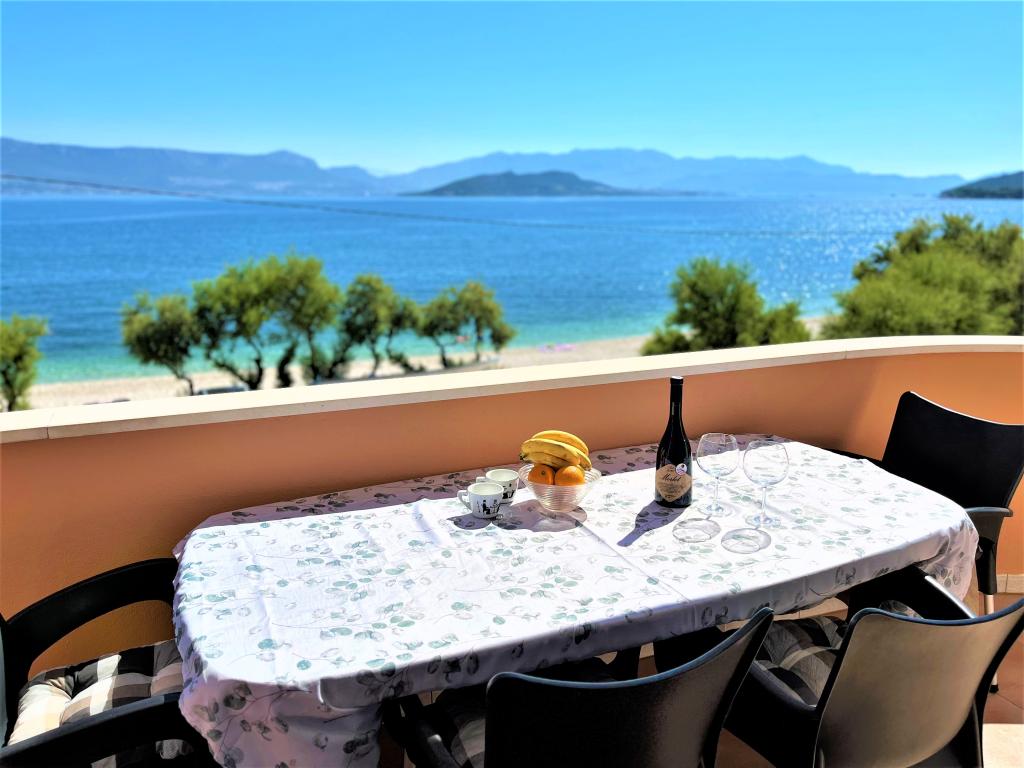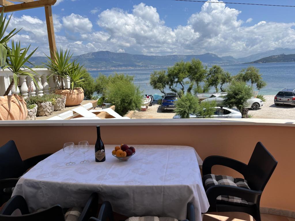 Az apartmanok a strand közvetlen közelében találhatók, mindössze 10 méterre, gyönyörű kilátással a tengerre. Nagyon tiszták, minden szükséges dologgal felszereltek. A tulajdonos nagyon kedves, segítőkész és gondoskodik a vendégeiről. Rendezett strand finom kavicsokkal és kültéri zuhanyzóval. A hely csendes környéken található. Ugyanakkor közel van bárokhoz, éttermekhez és egy vízi játszótérhez. Közel van a trogiri és spliti kirándulásokhoz. Tömegközlekedéssel és komppal is megközelíthető.
