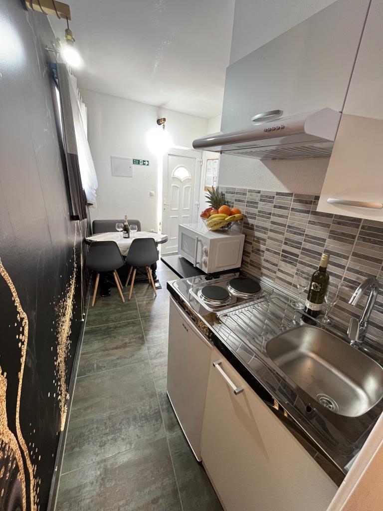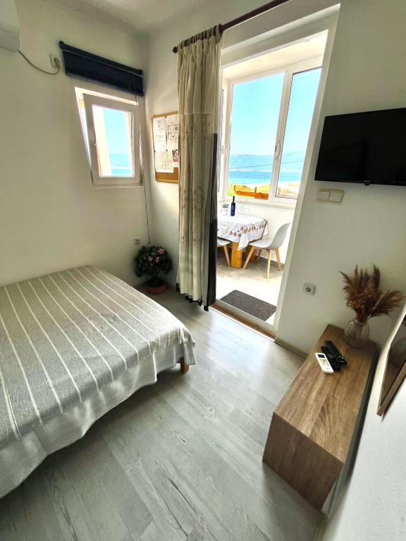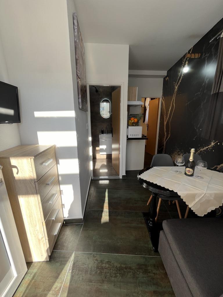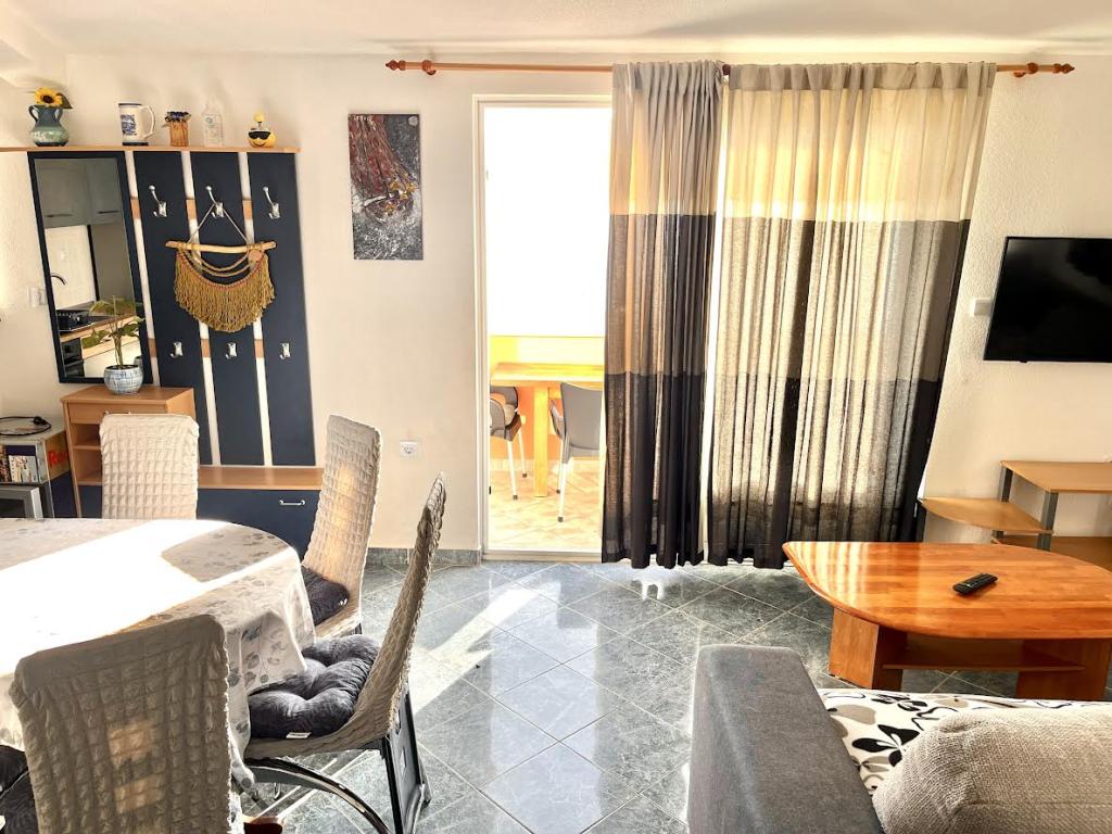 Nagyon jó helyen, a strand 10m, 200m legközelebbi étterem bar. Az ingatlan jól karbantartott, jól felszerelt. Host nagyon szép, tökéletesen kényelmes környezetben (Egy üveg bor + Rakija).